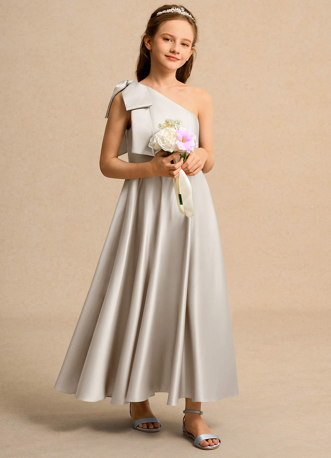 Vestido de Escarcha de Satin Mate de Corte En A con Hombro unilateral