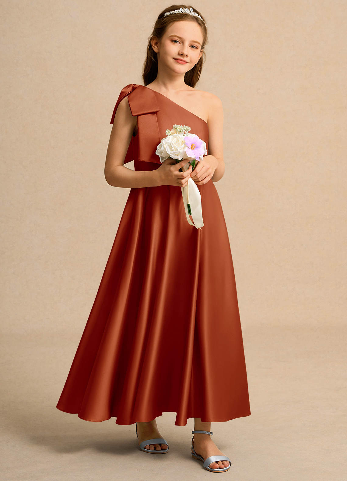 Vestido de Pimenton de Satin Mate de Corte En A con Hombro unilateral