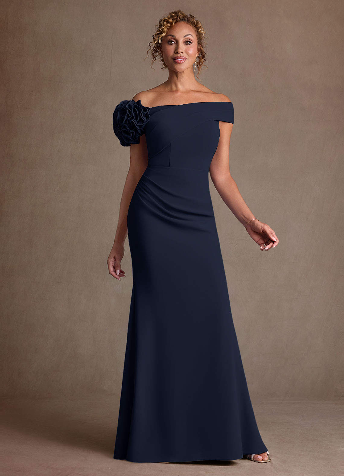 Vestido de Azul Marino Oscuro de Crepé elástico de Corte Sirena con Vestidos sin tirantes