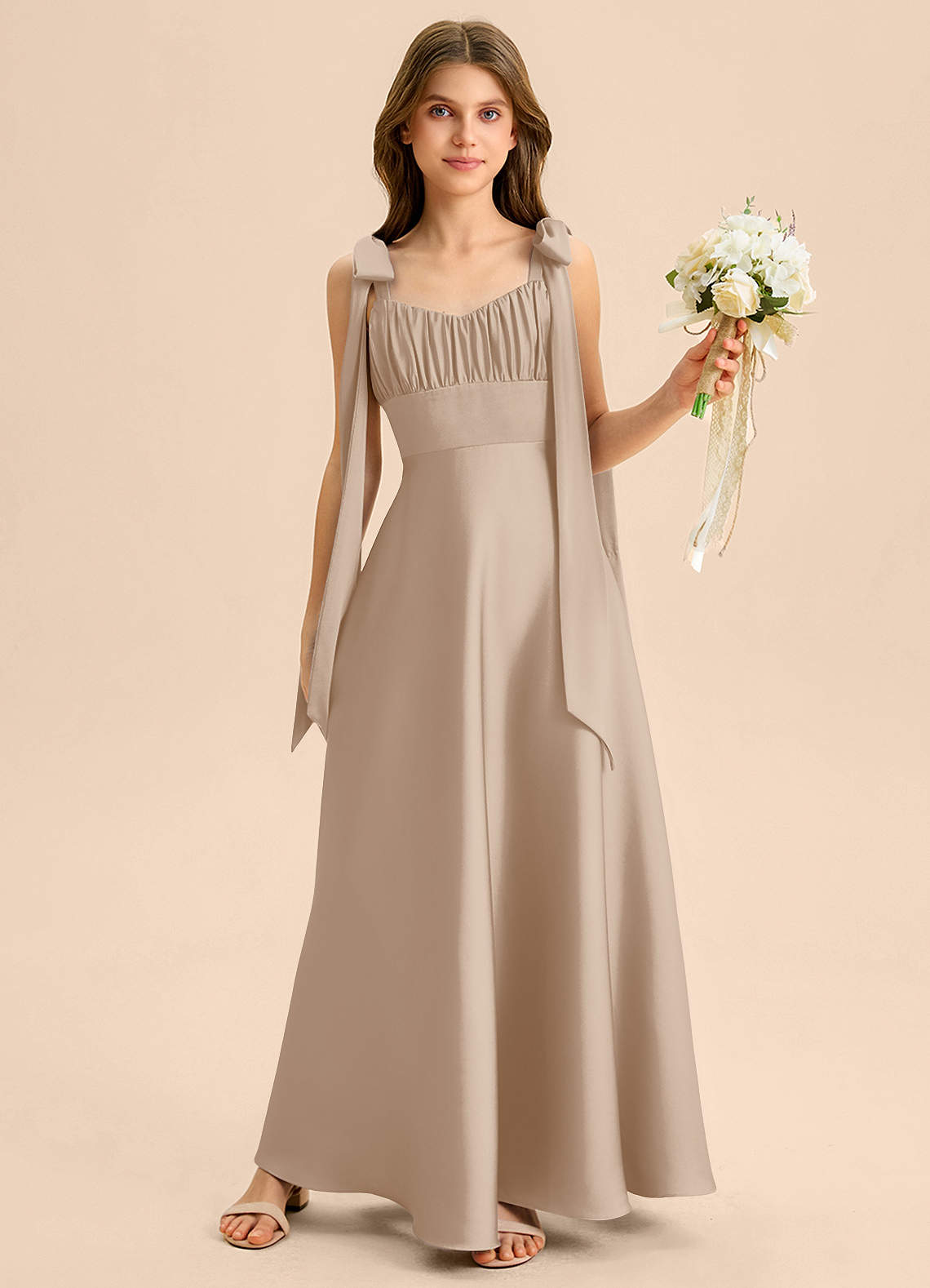 Vestido de Gris Pardo de Satén Elástico de Corte en A con Lazo