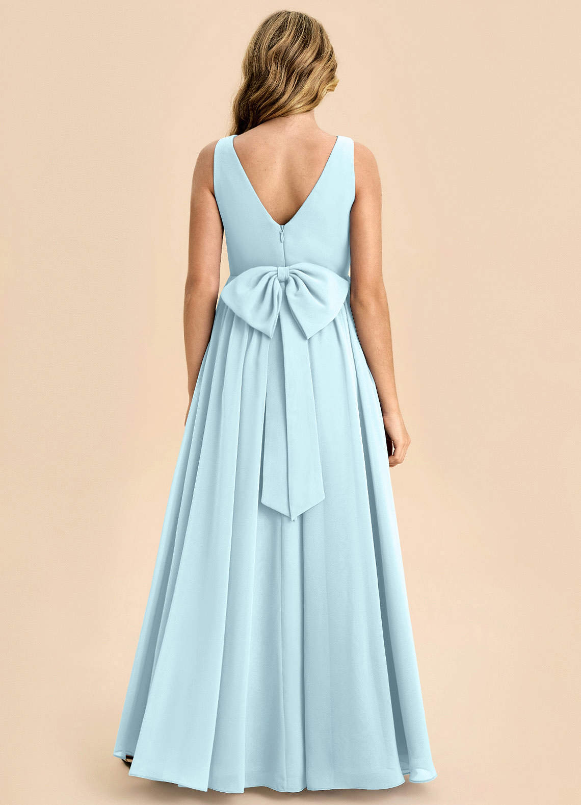 Vestido de Azul Nube de Gasa de Corte en A con Lazo