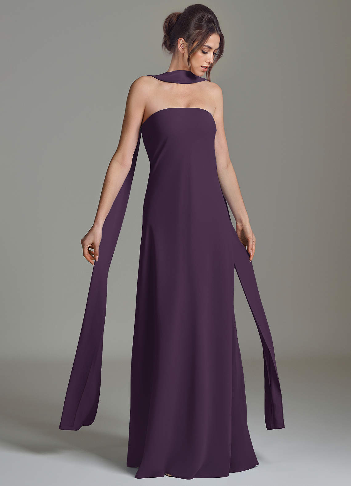 Vestido de Ciruela de Gasa de Corte en A con Sin tirantes
