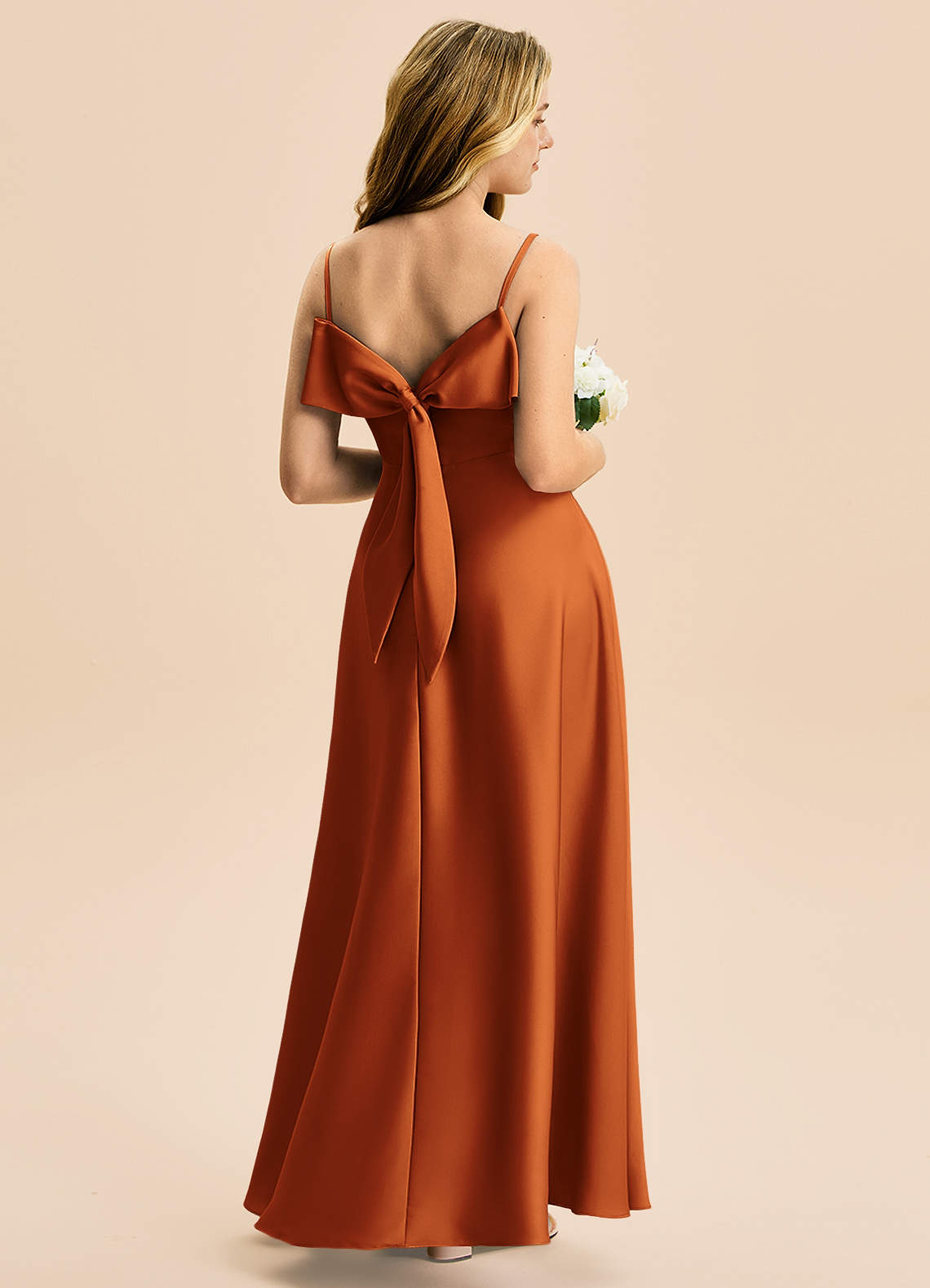 Vestido de Canela de Satén Elástico de Corte en A con Plisado