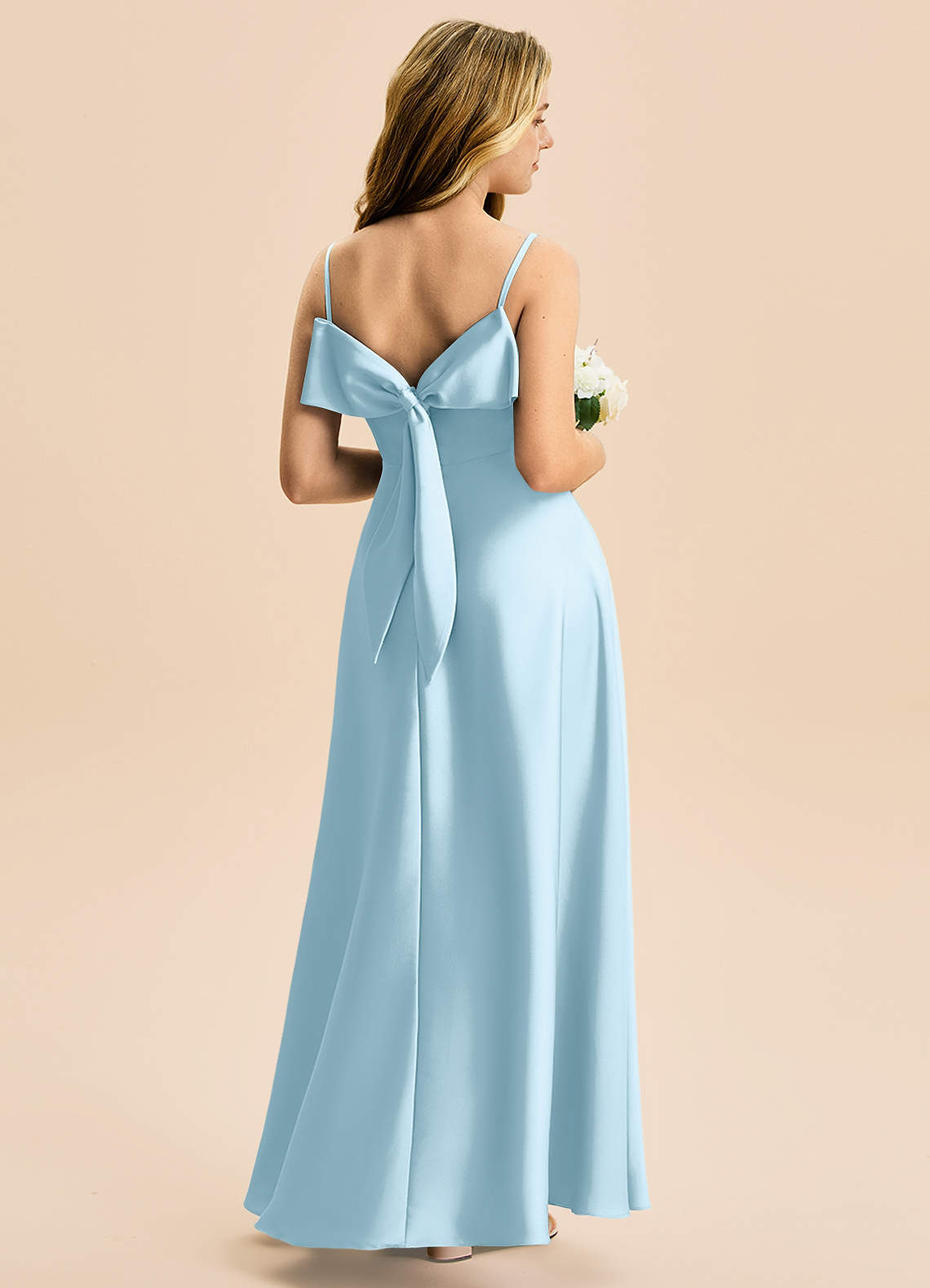 Vestido de Azul Cielo de Satén Elástico de Corte en A con Plisado