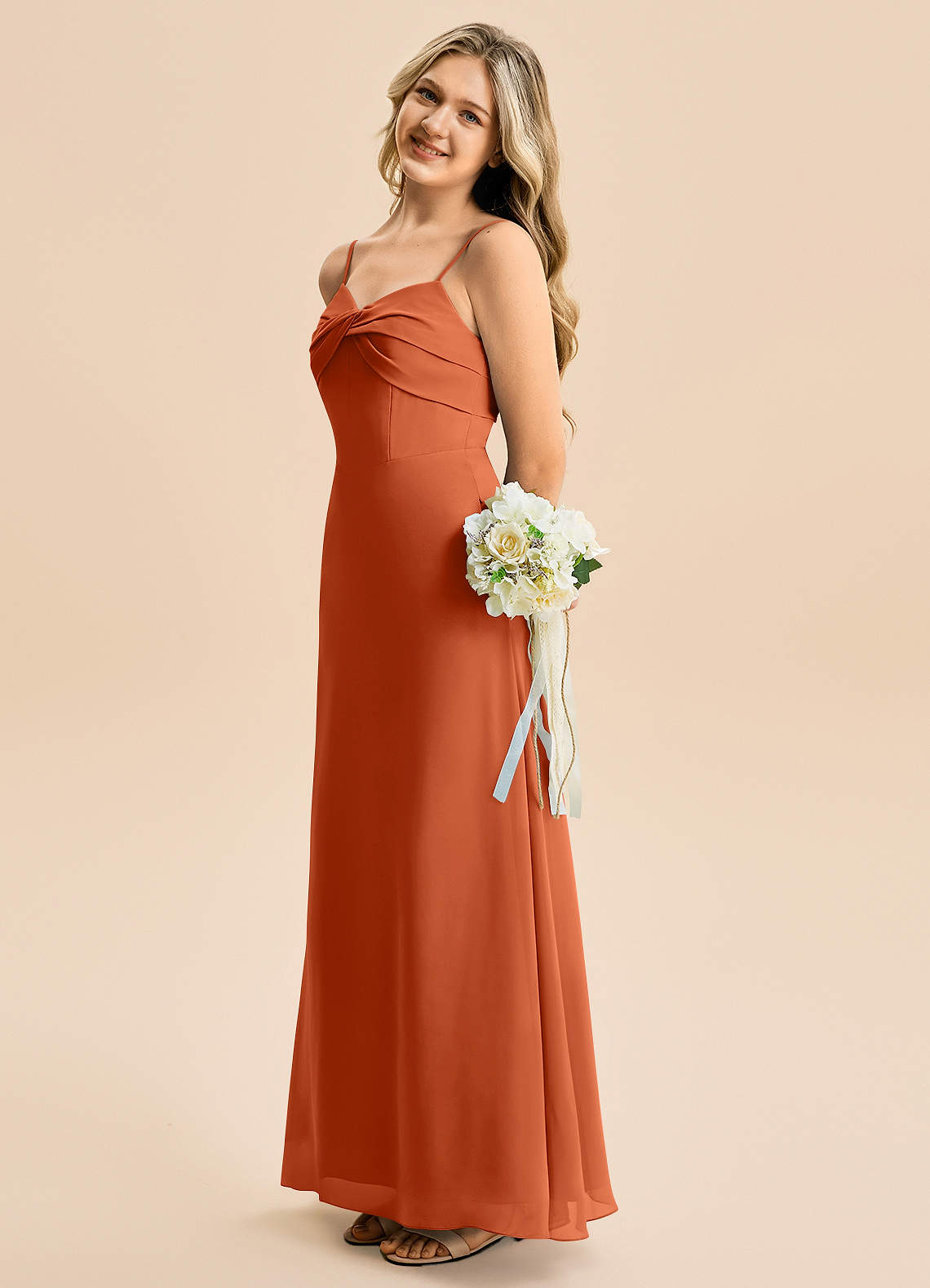 Vestido de Naranja Quemada de Gasa de Corte en A con Escote de Corazón