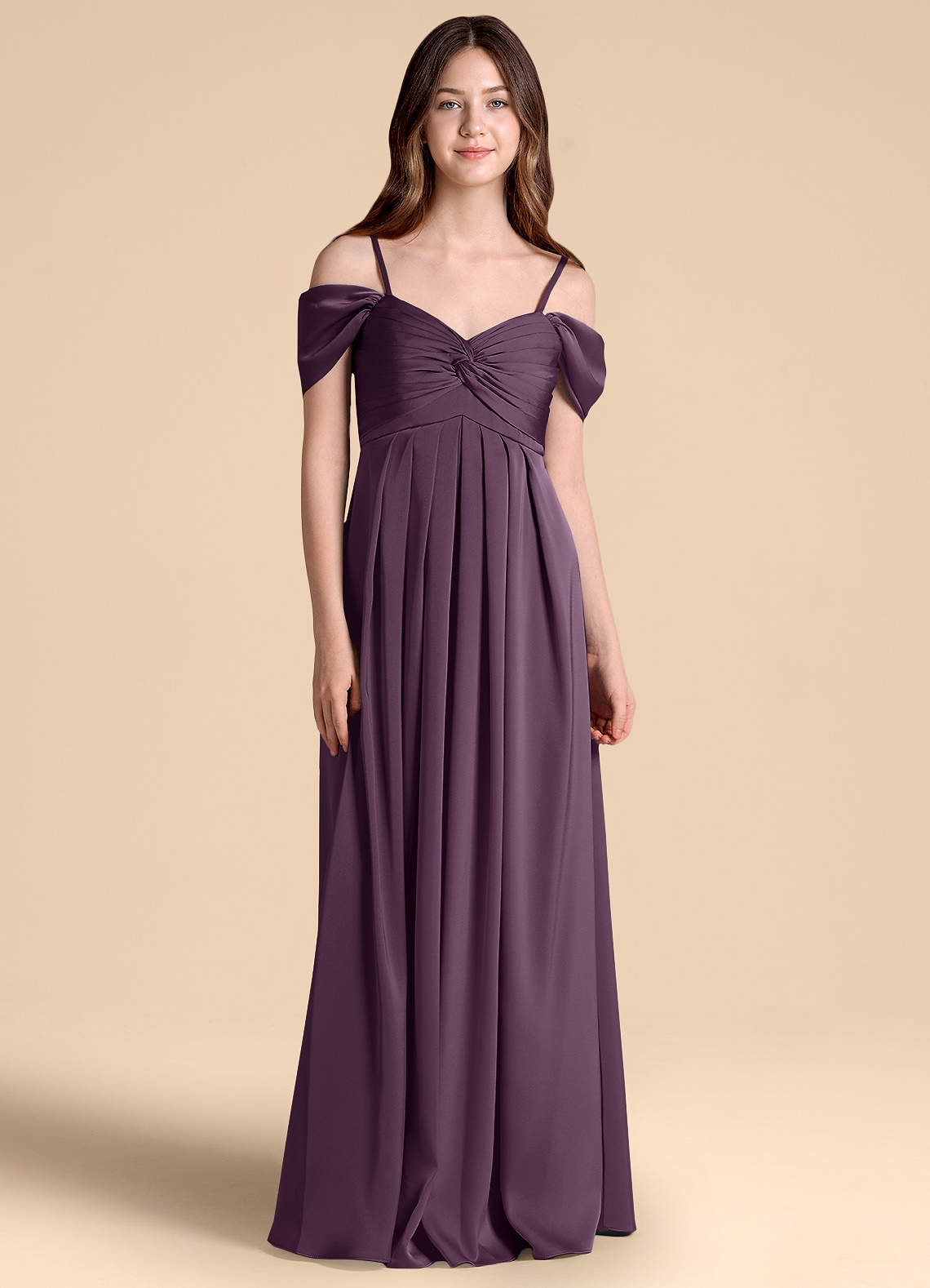 Vestido de Ciruela de Satén Elástico de Corte en A con Vestidos sin tirantes