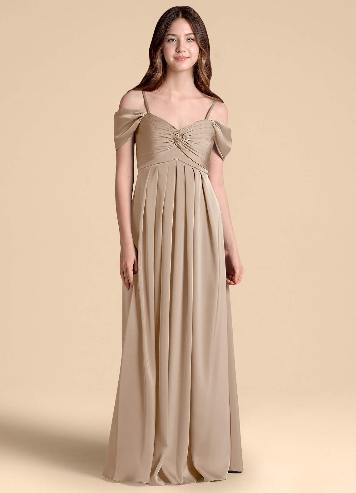 Vestido de Gris Pardo de Satén Elástico de Corte en A con Vestidos sin tirantes