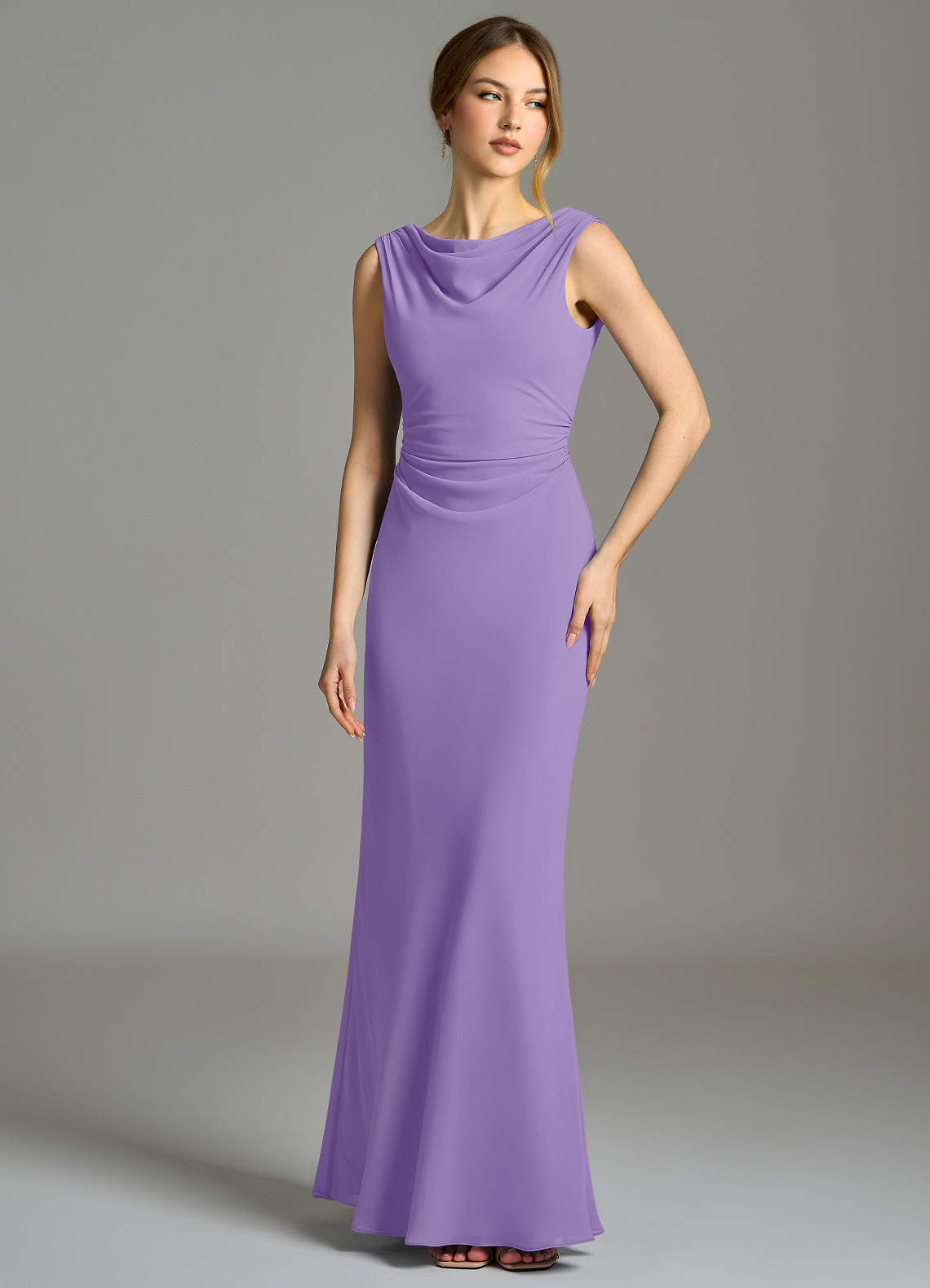 Vestido de Tahití de Gasa de Corte Sirena con Plisado