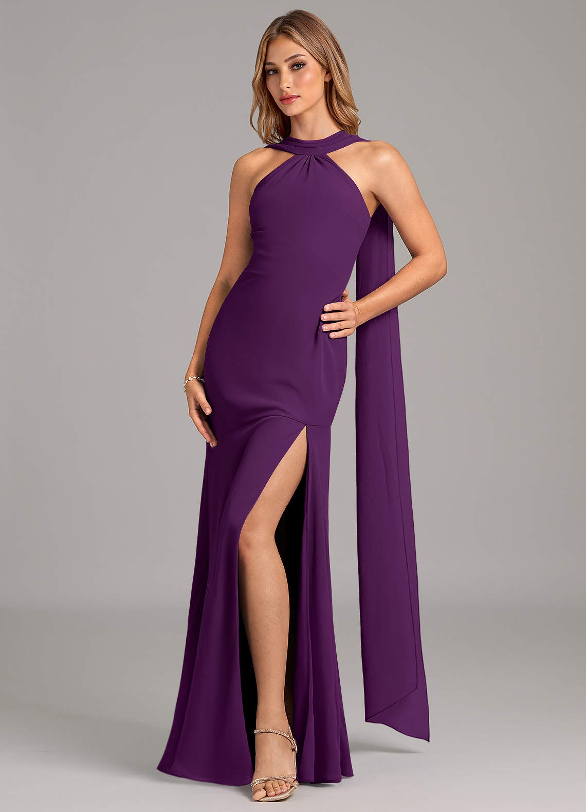 Vestido de Uva de Gasa de Corte Sirena con Plisado
