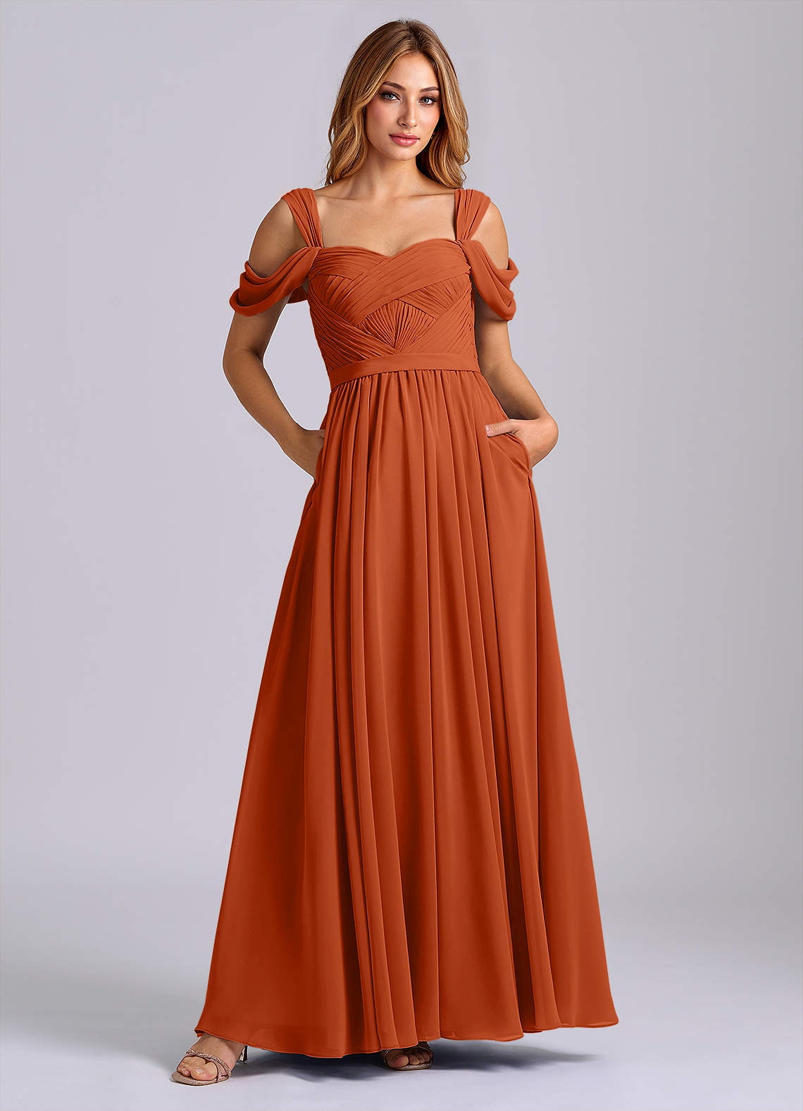 Vestido de Naranja Quemada de Gasa de Corte en A con Vestidos sin tirantes
