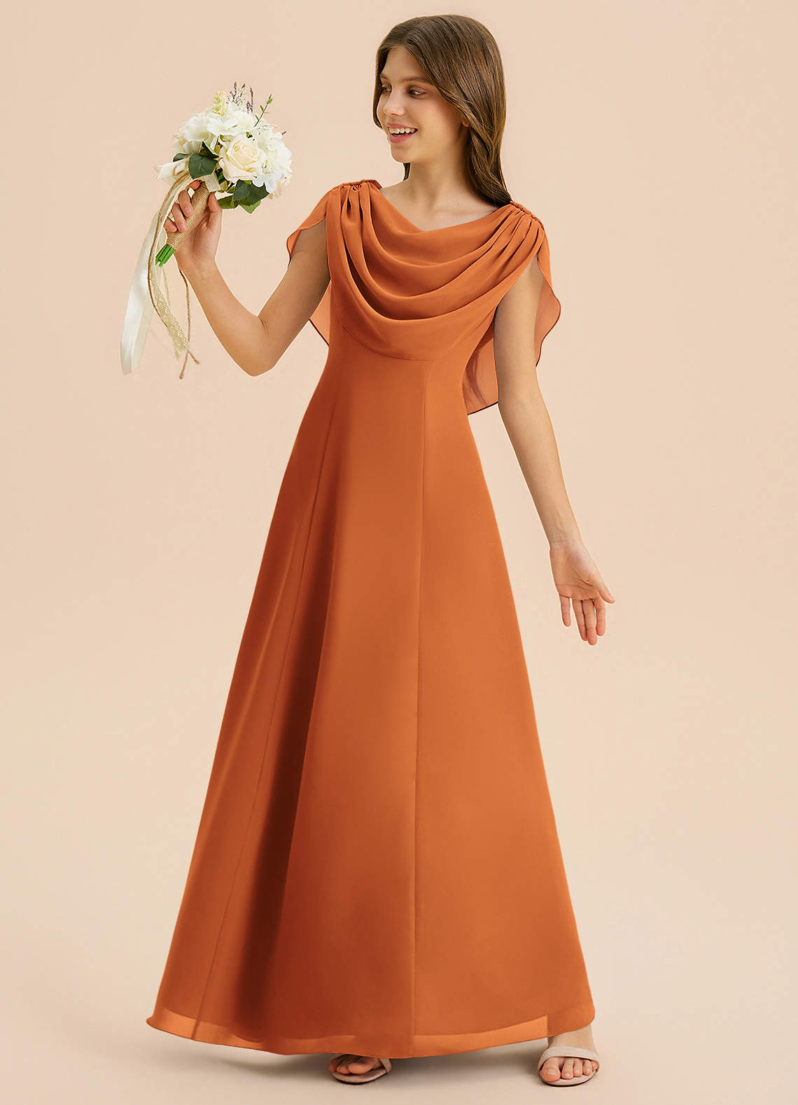 Vestido de Canela de Gasa de Corte en A con Plisado