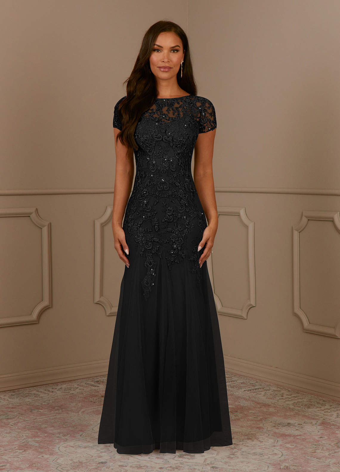 Vestido de Negro de Tul de Corte Sirena con Scoop Lentejuelas