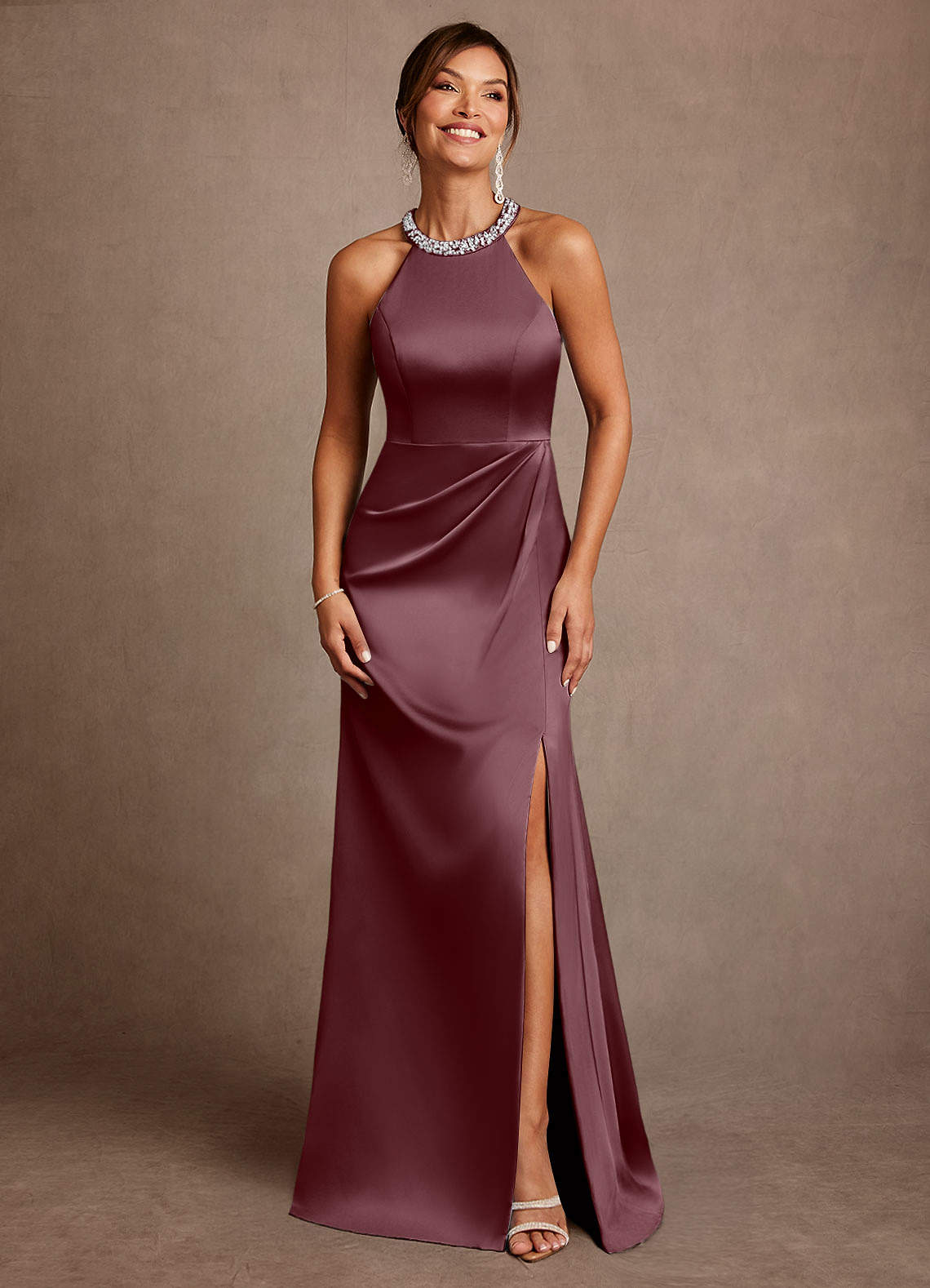 Vestido de Sangrado de Satén Elástico de Corte en A con Plisado
