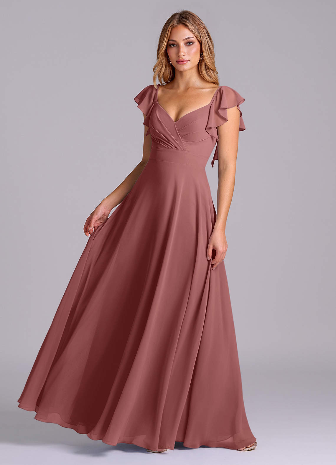 Vestido de Amatista de Gasa de Corte en A con Plisado