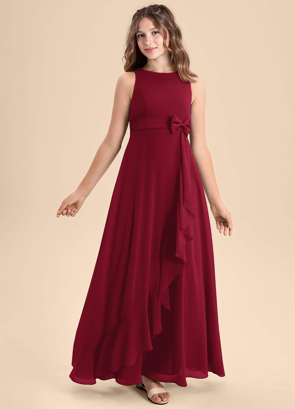 Vestido de Borgoña de Gasa de Corte en A con Lazo
