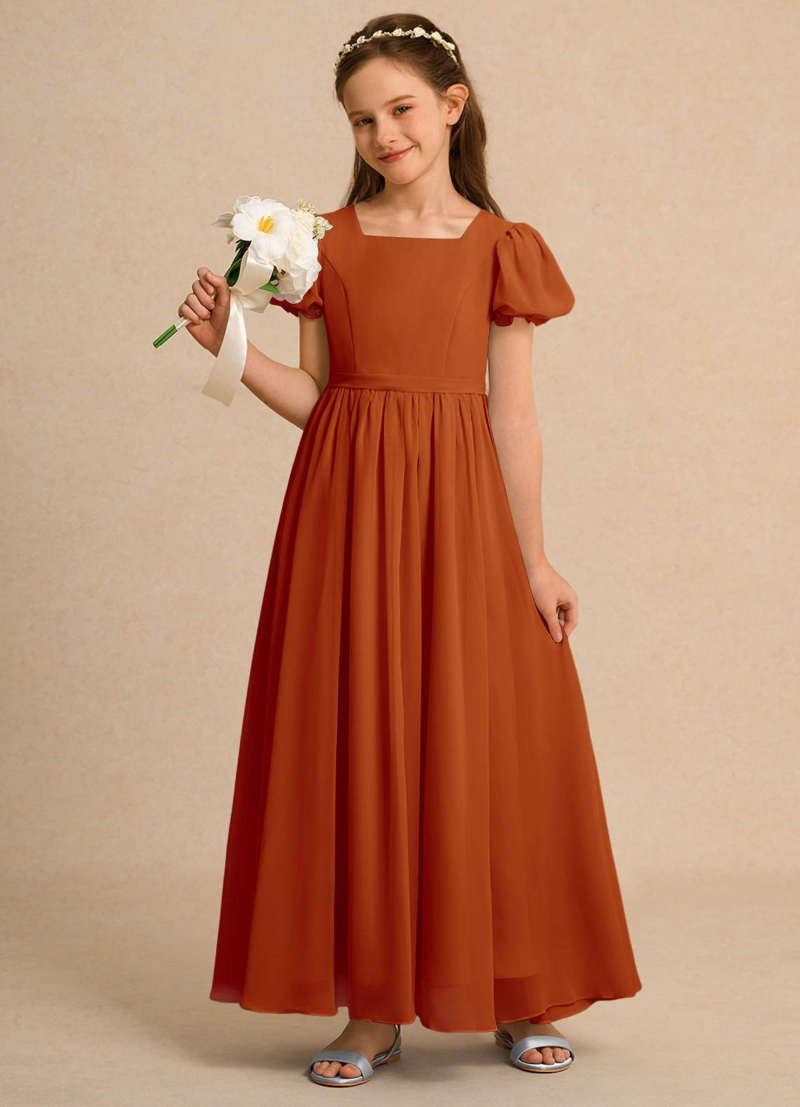 Vestido de Pimenton de Gasa de Corte En A con Con mangas