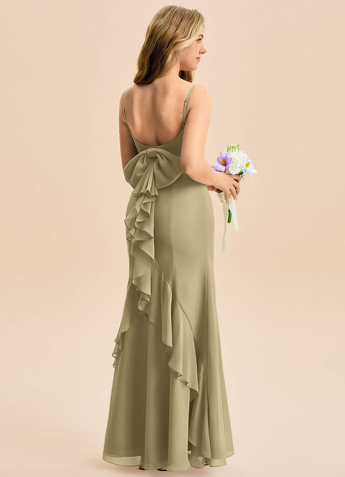 Vestido de Musgo Verde de Gasa de Corte Sirena con Lazo