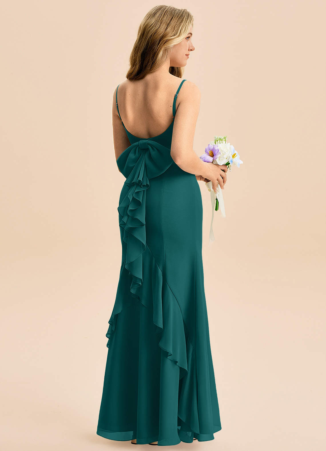 Vestido de Pavo Real de Gasa de Corte Sirena con Lazo