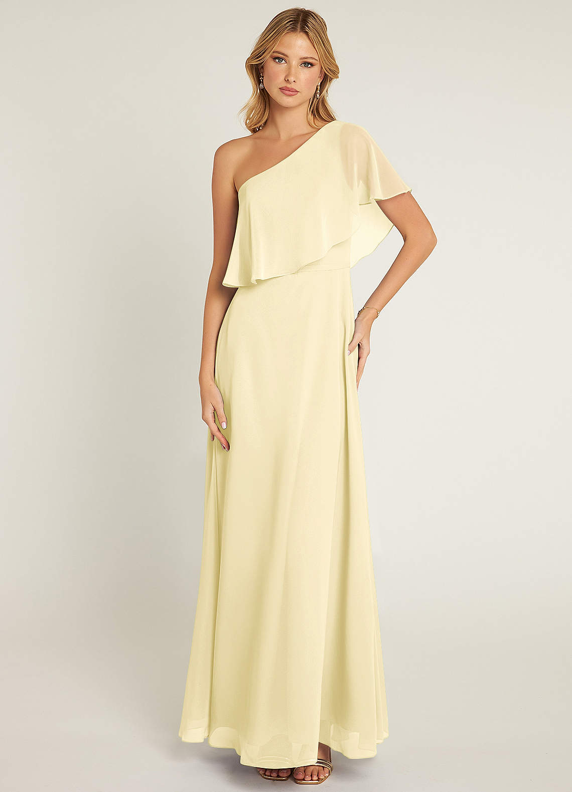 Vestido de Sorbete De Limón de Gasa de Corte en A con Hombro unilateral