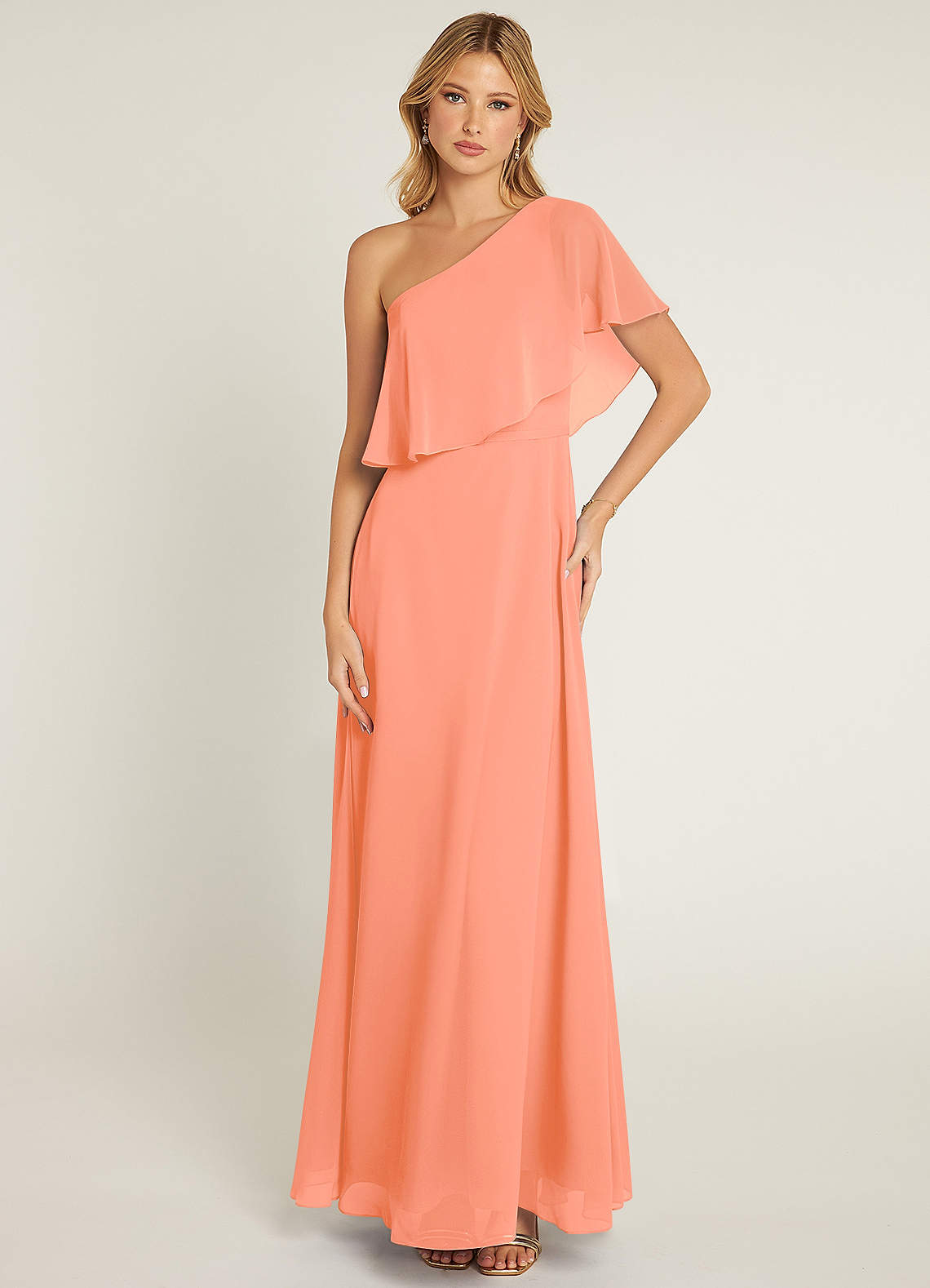 Vestido de Atardecer de Gasa de Corte en A con Hombro unilateral