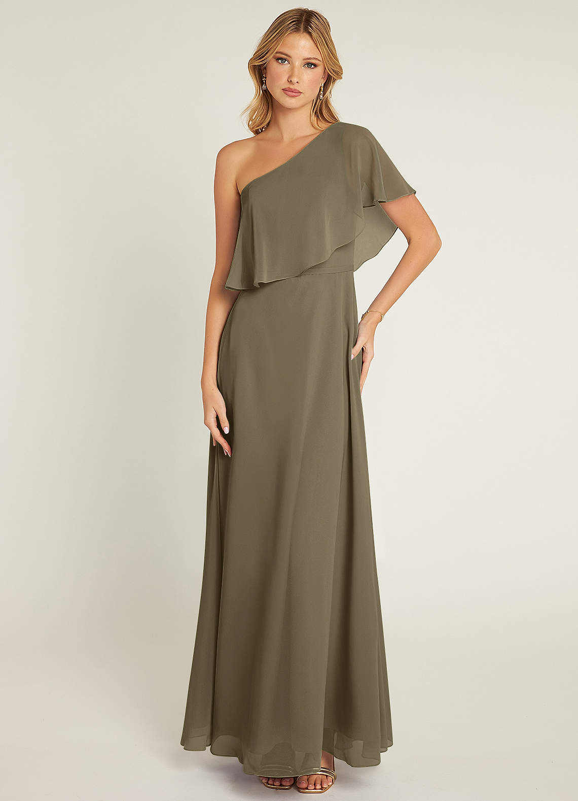 Vestido de Verde Sauce de Gasa de Corte en A con Hombro unilateral