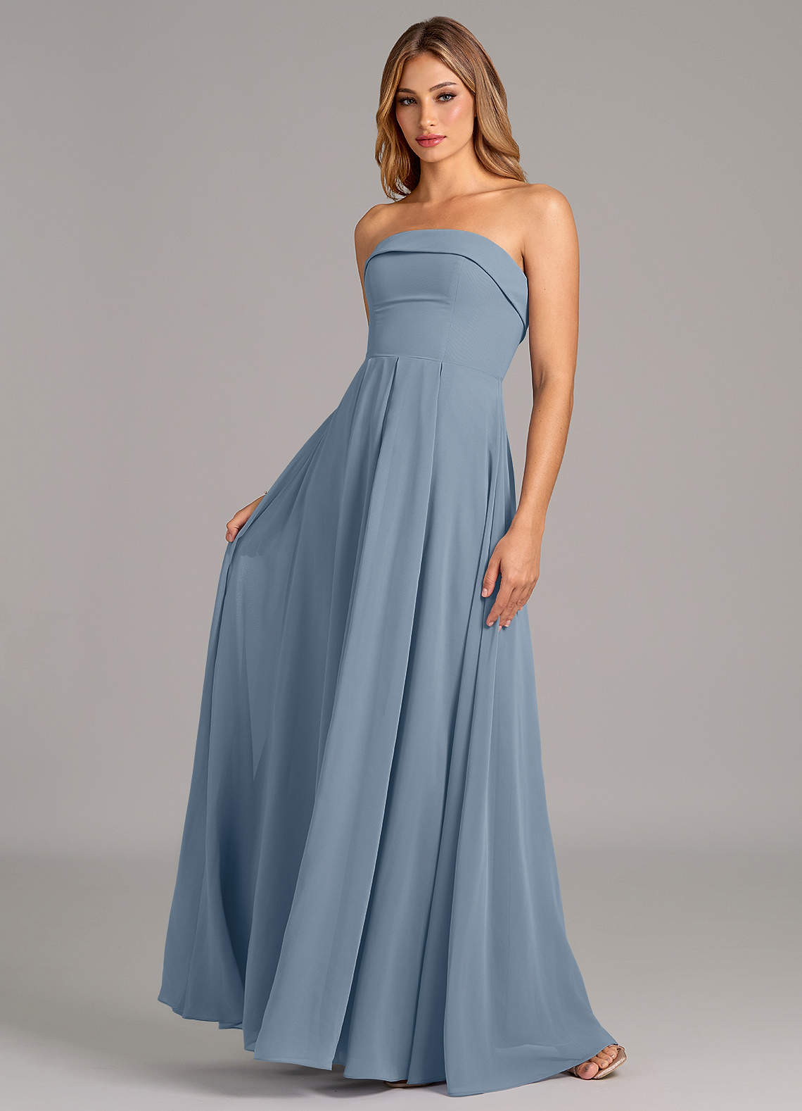 Vestido de Azul Polvoriento de Gasa de Corte en A Convertible con Sin tirantes