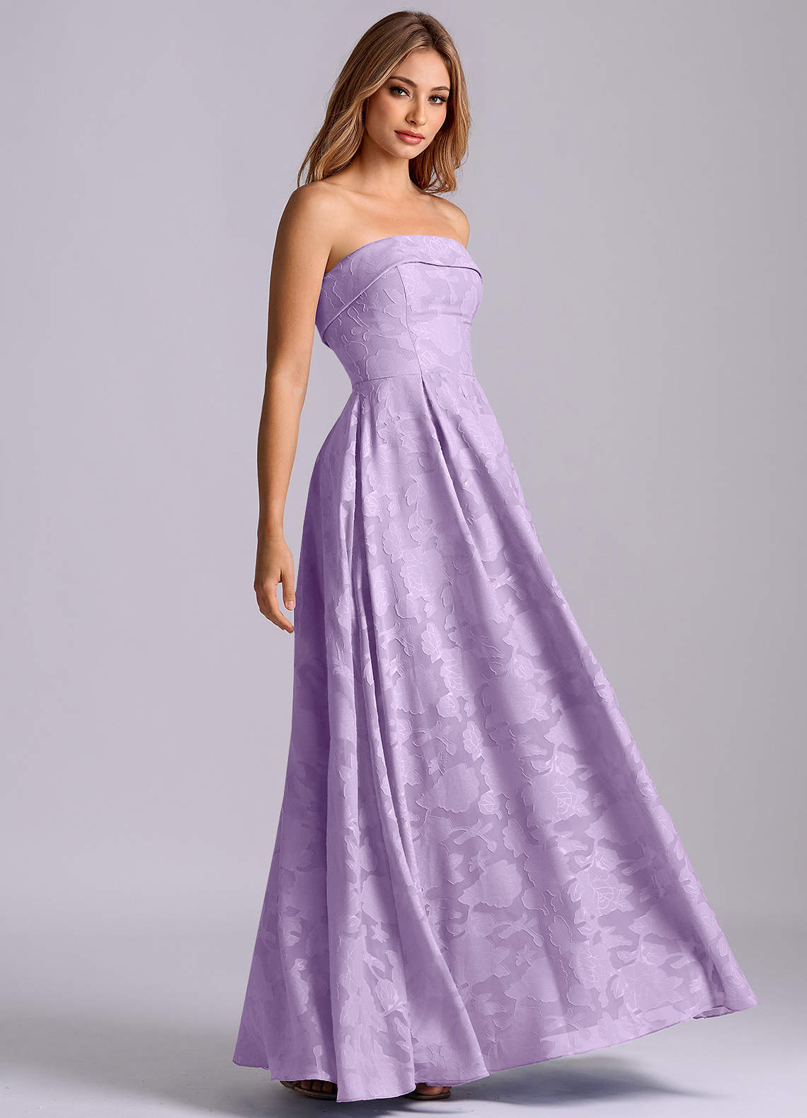 Vestido de Lila de Devorado Floral de Corte en A con Sin tirantes