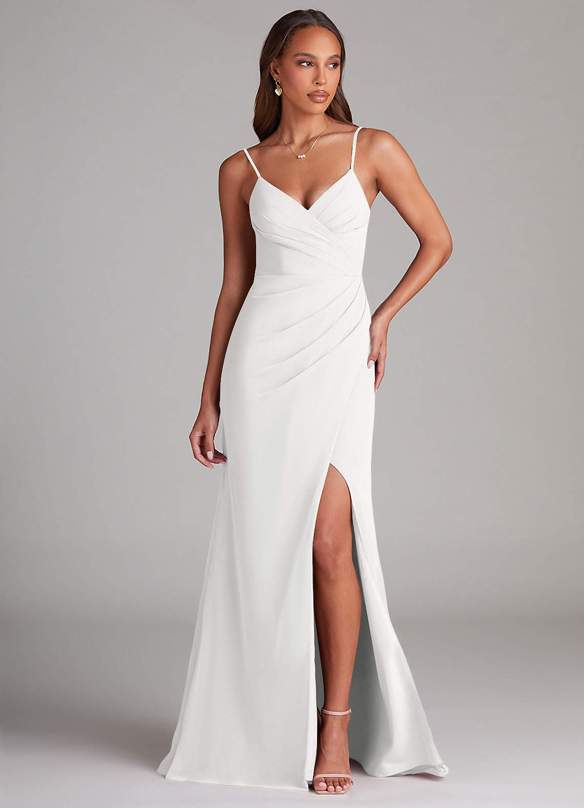 Vestido de Blanco de Gasa de Corte Recto con Plisado