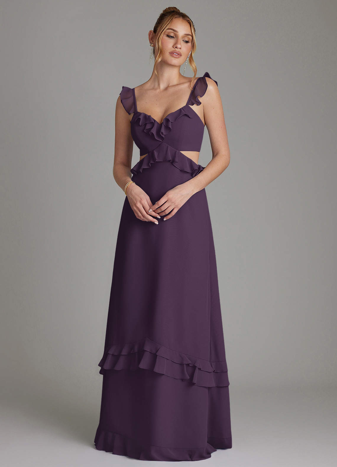 Vestido de Ciruela de Gasa de Corte en A con Corsé