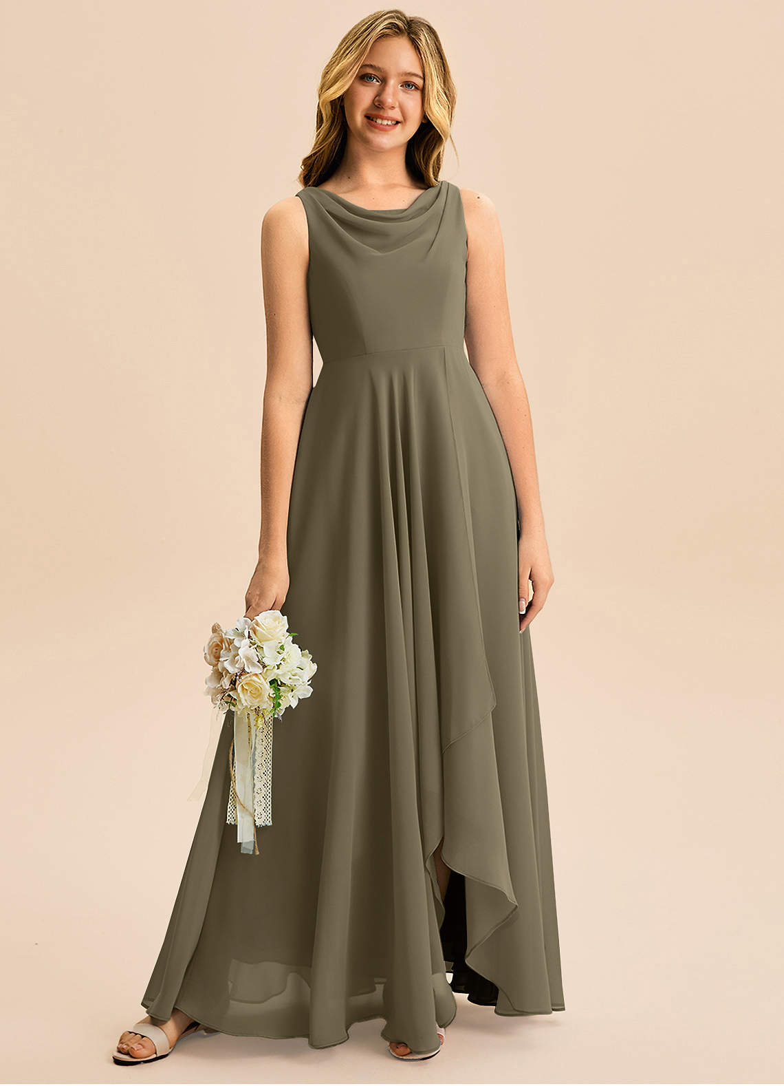 Vestido de Verde Sauce de Gasa de Corte en A con Plisado