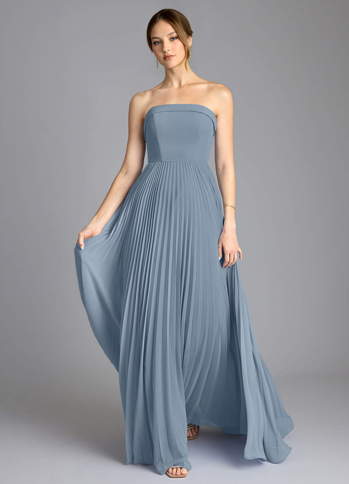 Vestido de Azul Polvoriento de Gasa de Corte en A con Sin tirantes