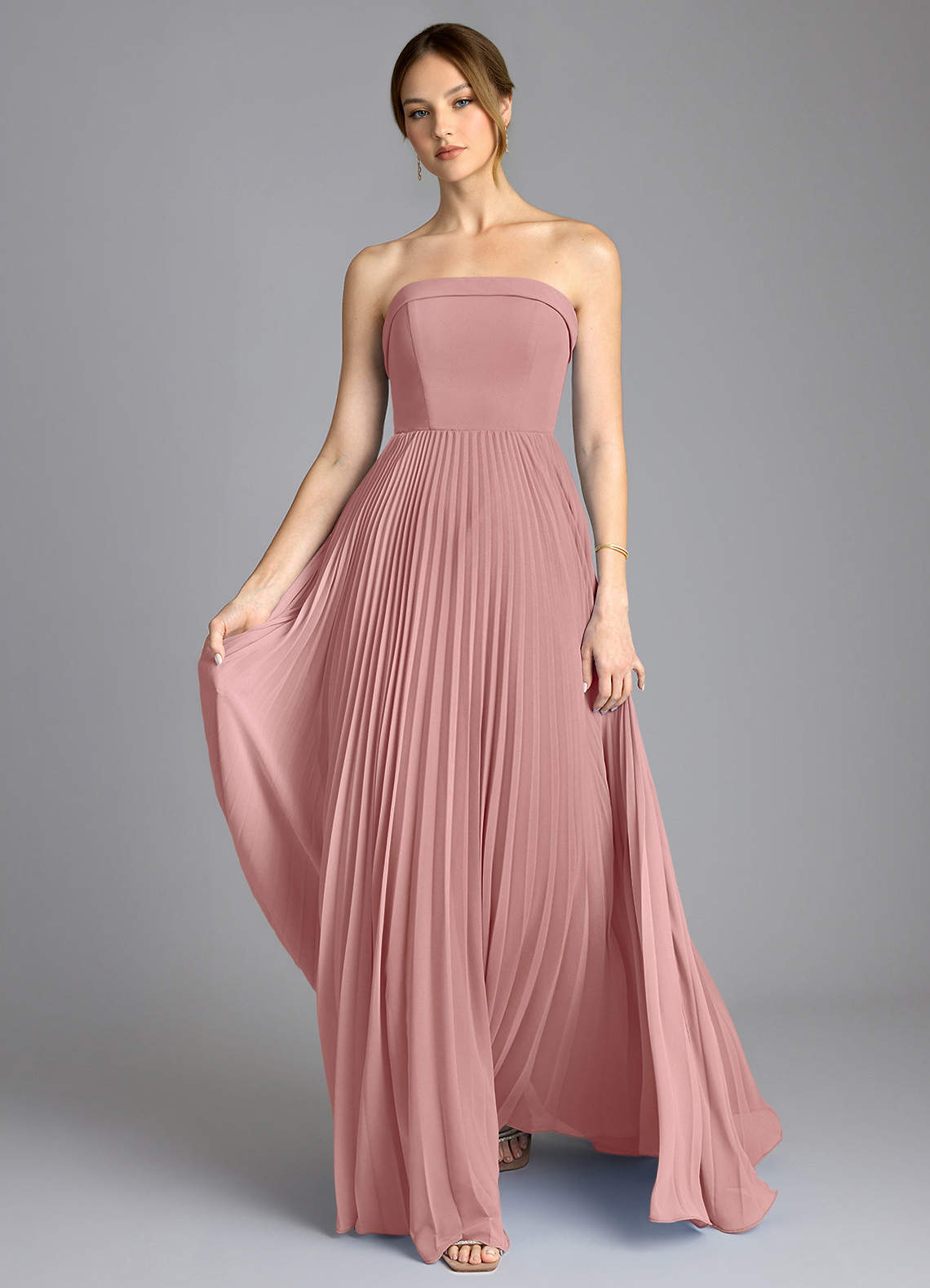 Vestido de Rosa Polvorienta de Gasa de Corte en A con Sin tirantes
