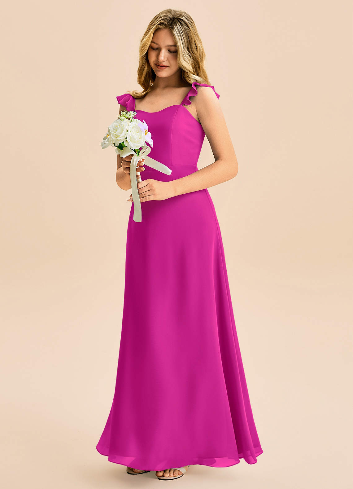 Vestido de Fucsia de Gasa de Corte en A con Volante