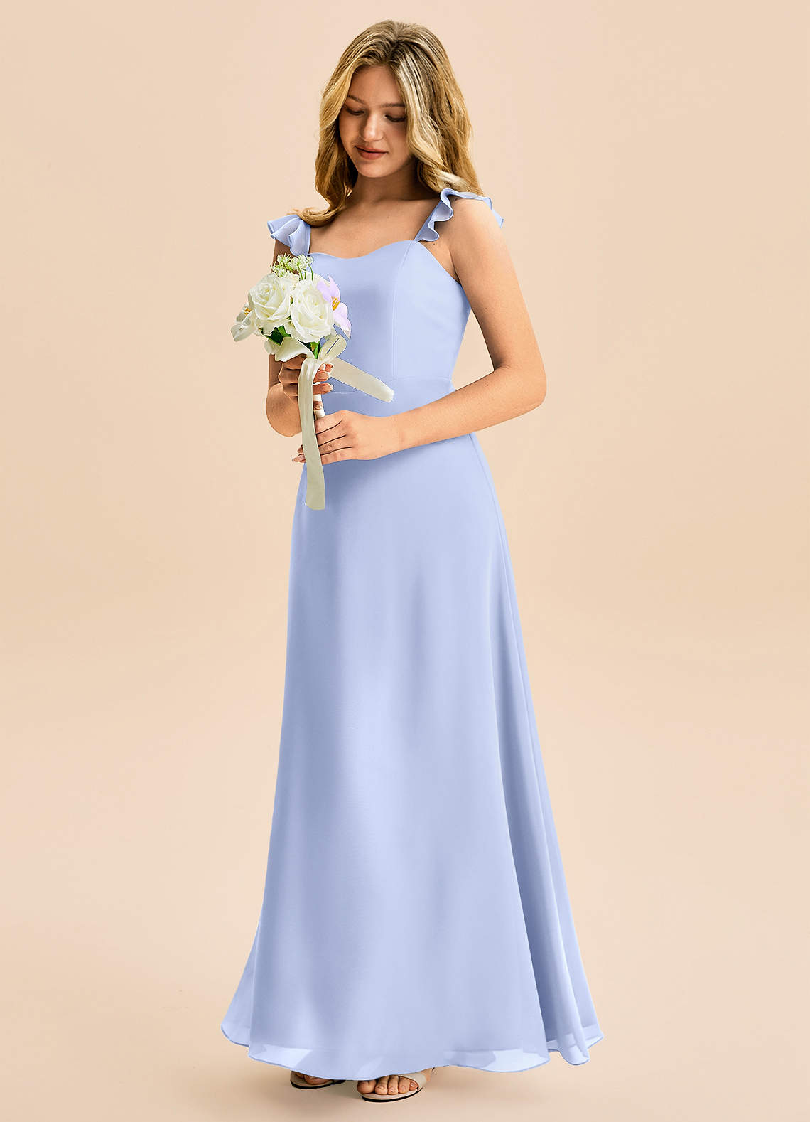 Vestido de Hielo de Gasa de Corte en A con Volante