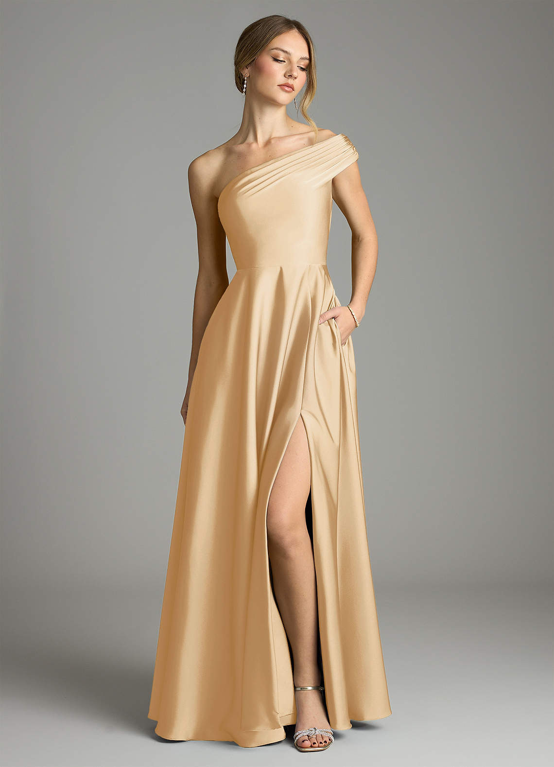 Vestido de Oro de Satén Elástico de Corte en A con Vestidos sin tirantes