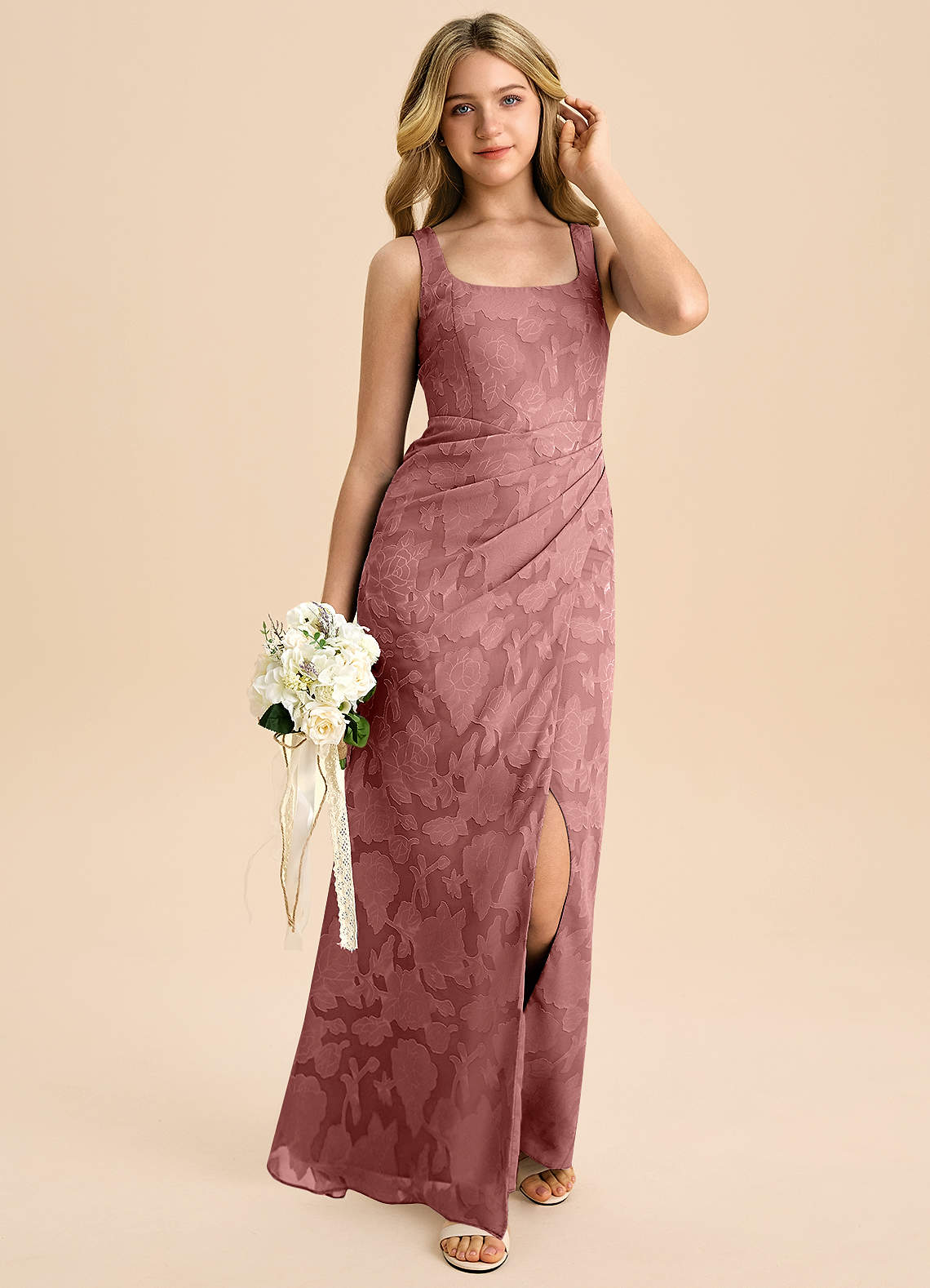 Vestido de Rosa Polvorienta de Devorado Floral de Corte Recto con Plisado