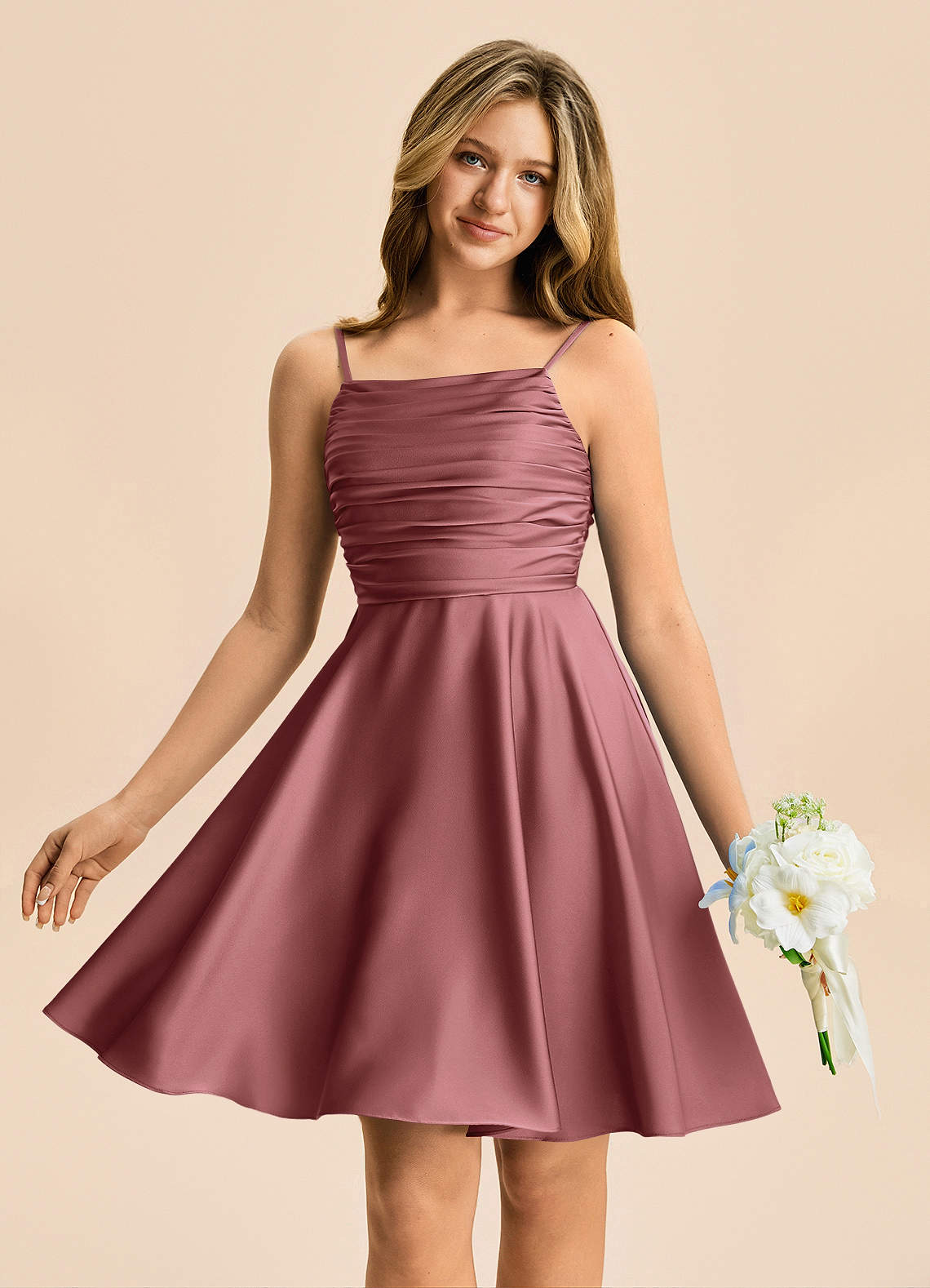 Vestido de Amatista de Satén Elástico de Corte en A con Plisado