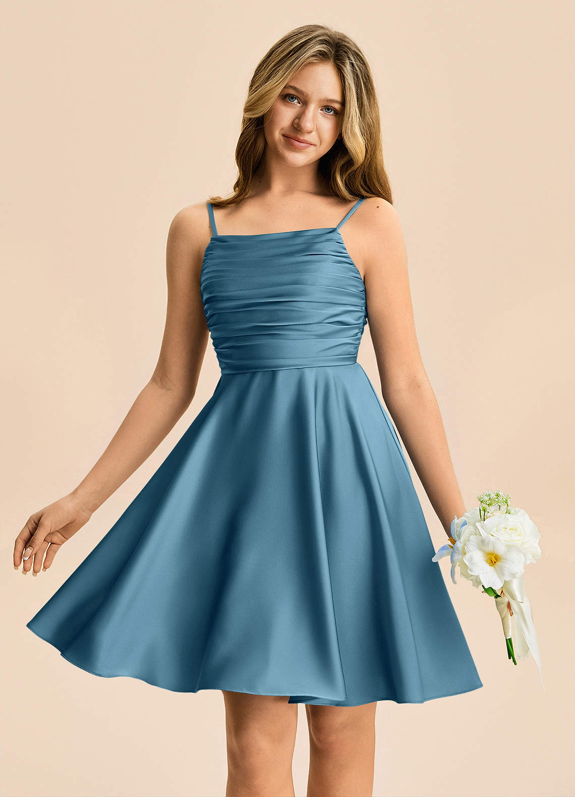 Vestido de Bermudas de Satén Elástico de Corte en A con Plisado