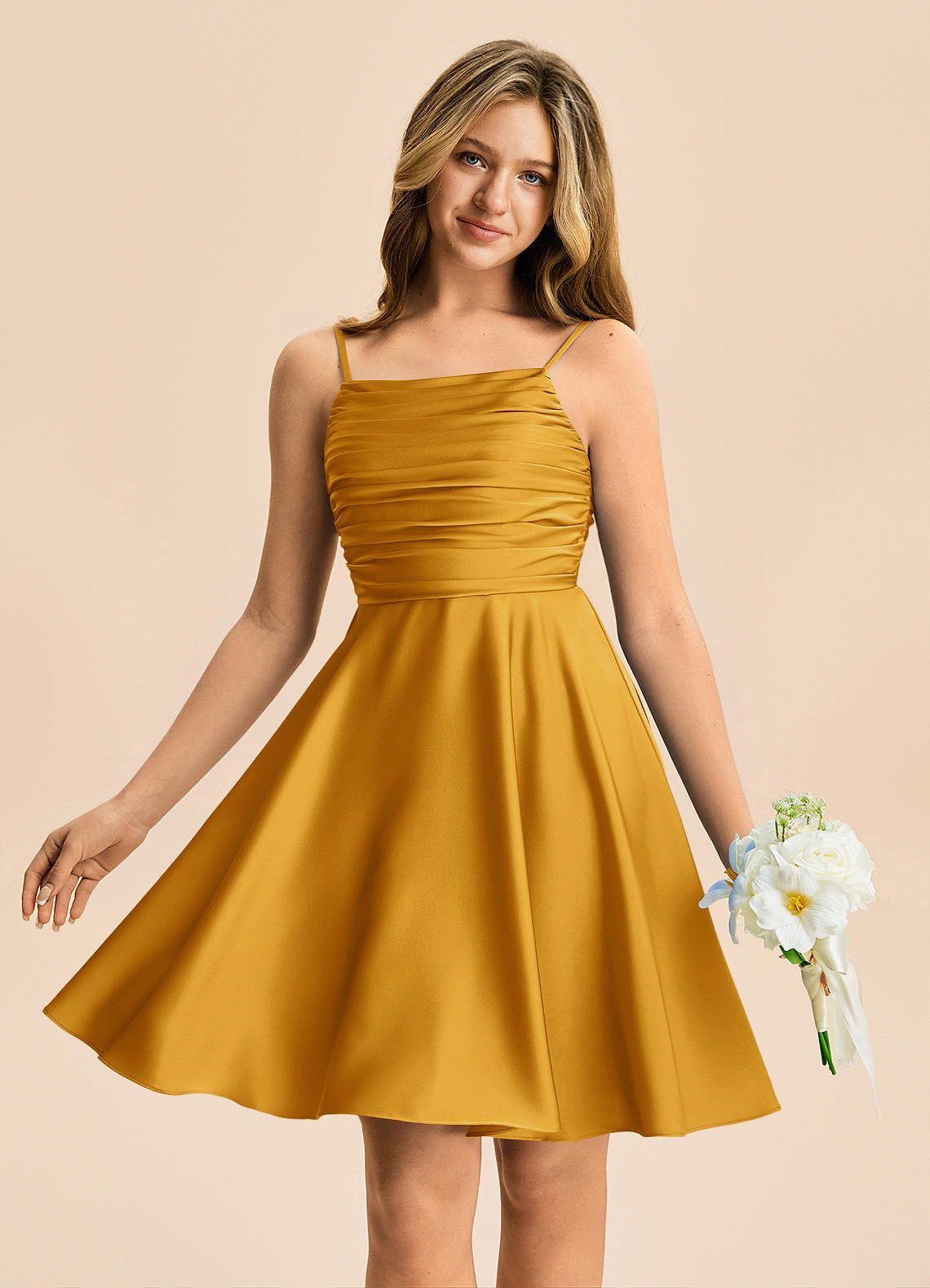 Vestido de Caramelo de Satén Elástico de Corte en A con Plisado