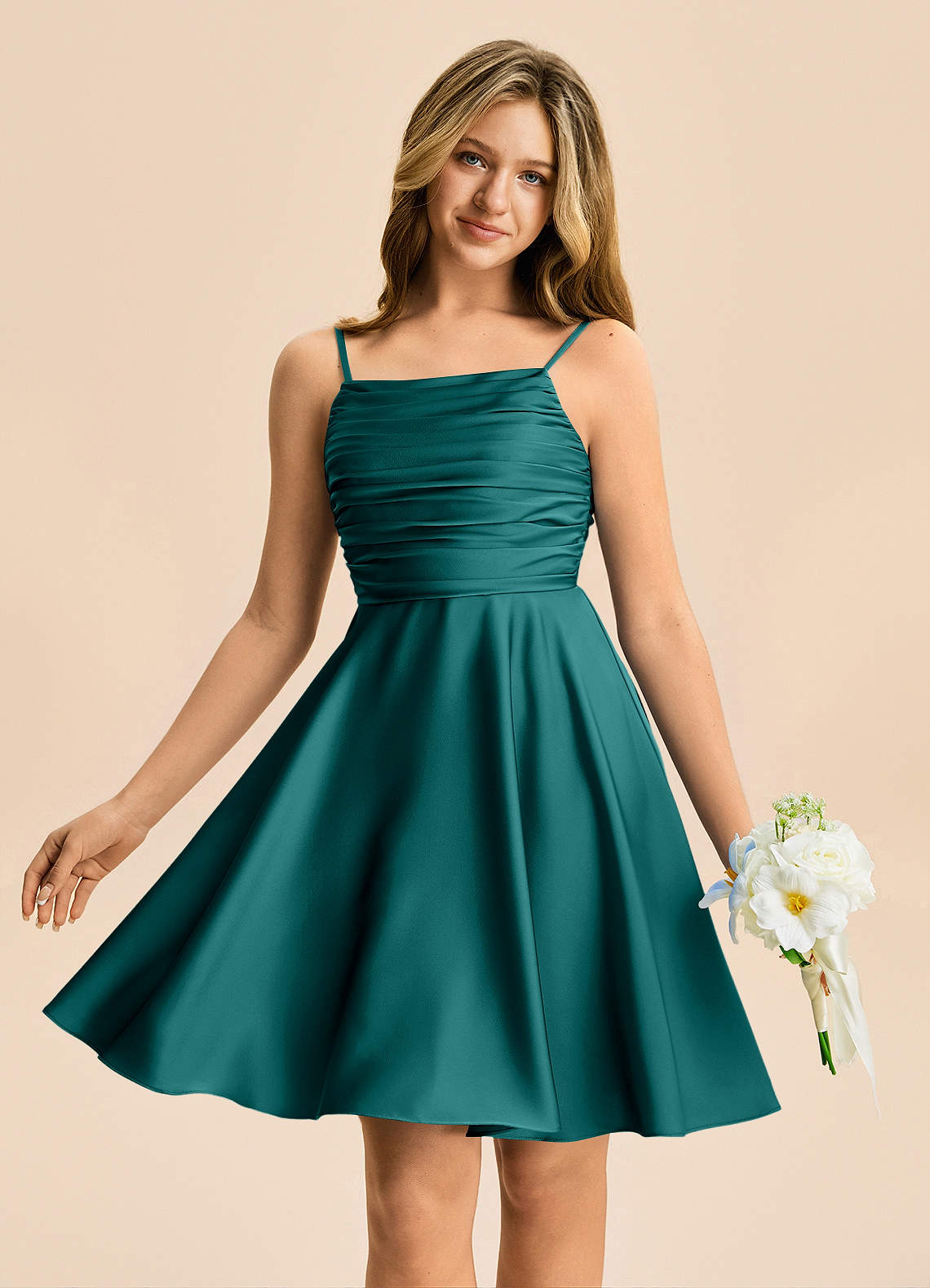 Vestido de Pavo Real de Satén Elástico de Corte en A con Plisado