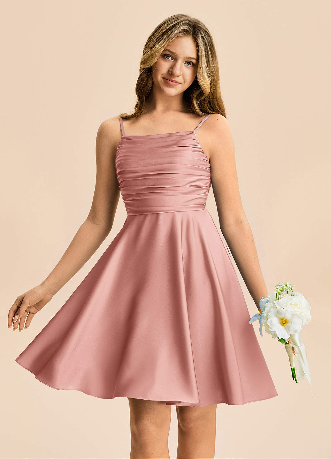 Vestido de Rosetón de Satén Elástico de Corte en A con Plisado