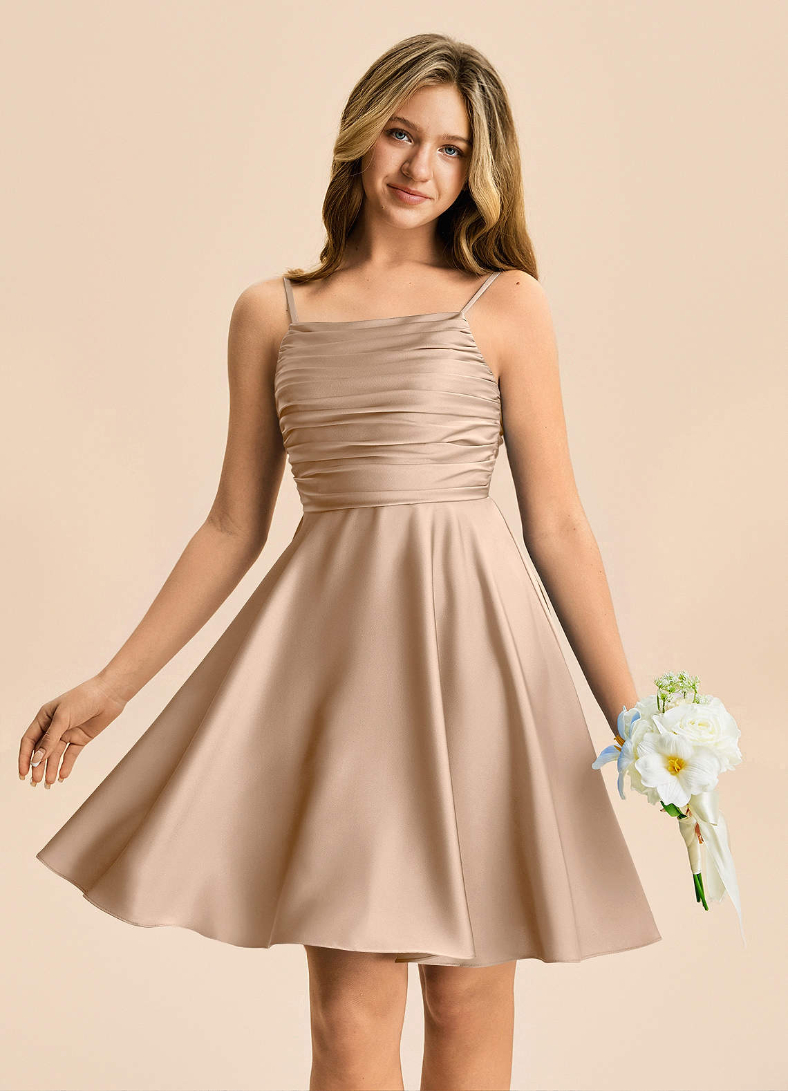 Vestido de Gris Pardo de Satén Elástico de Corte en A con Plisado