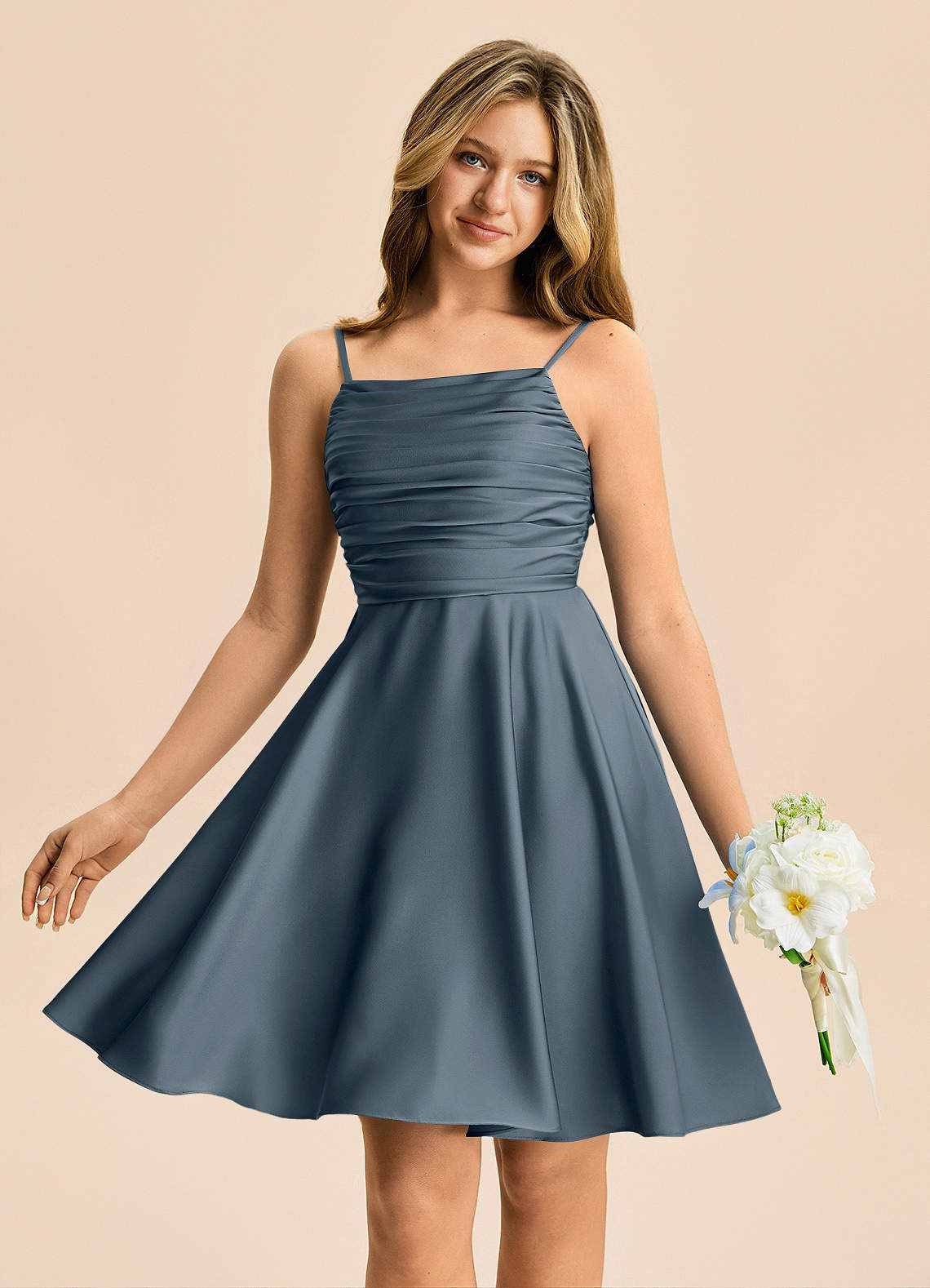 Vestido de Crepúsculo de Satén Elástico de Corte en A con Plisado