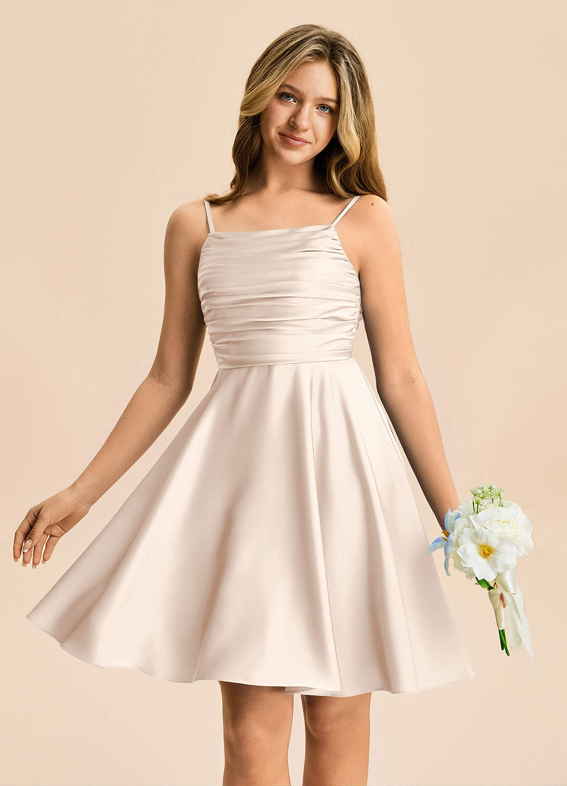 Vestido de Alabastro Blanco de Satén Elástico de Corte en A con Plisado