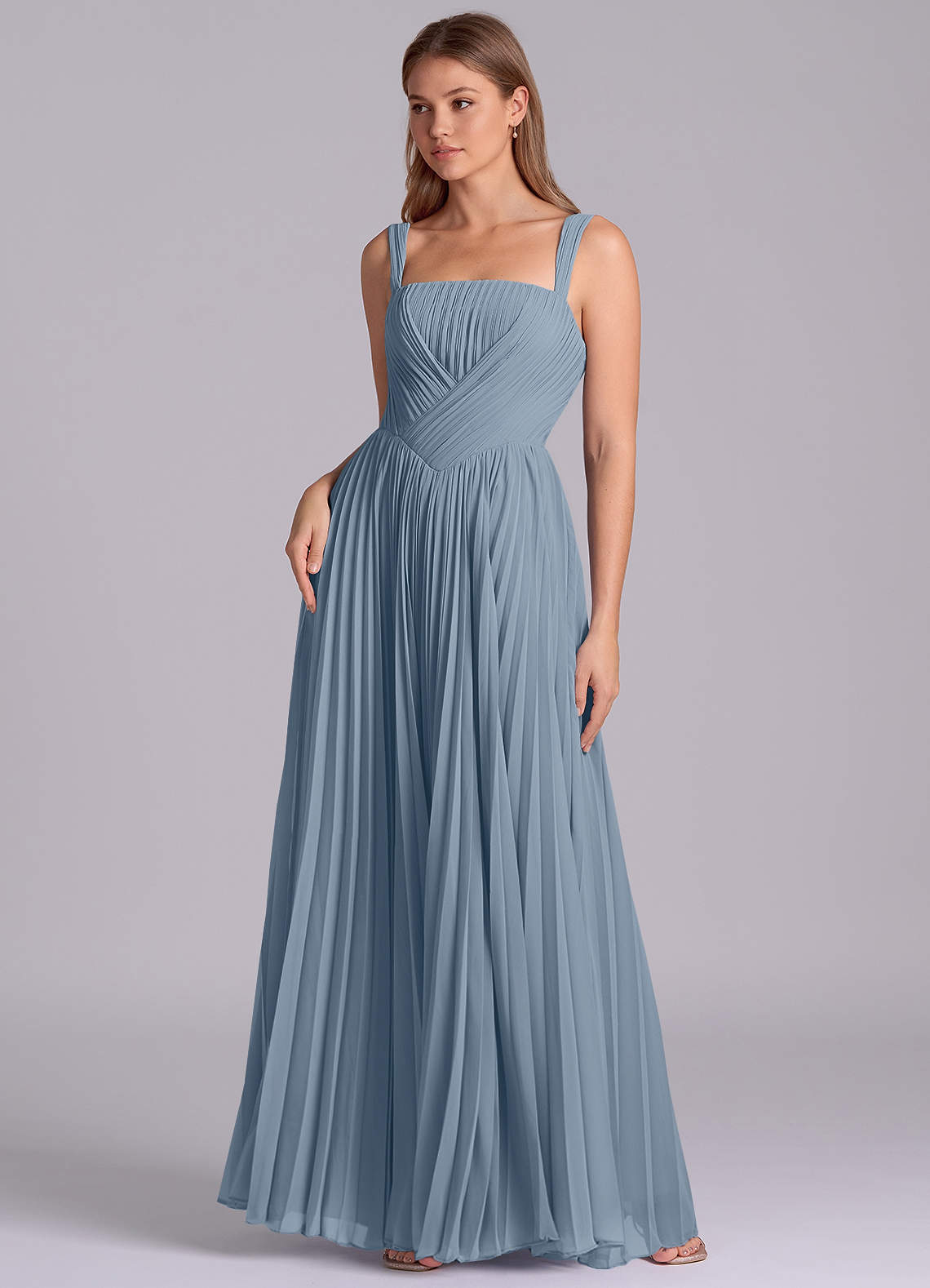Vestido de Azul Polvoriento de Gasa de Corte en A con Plisado