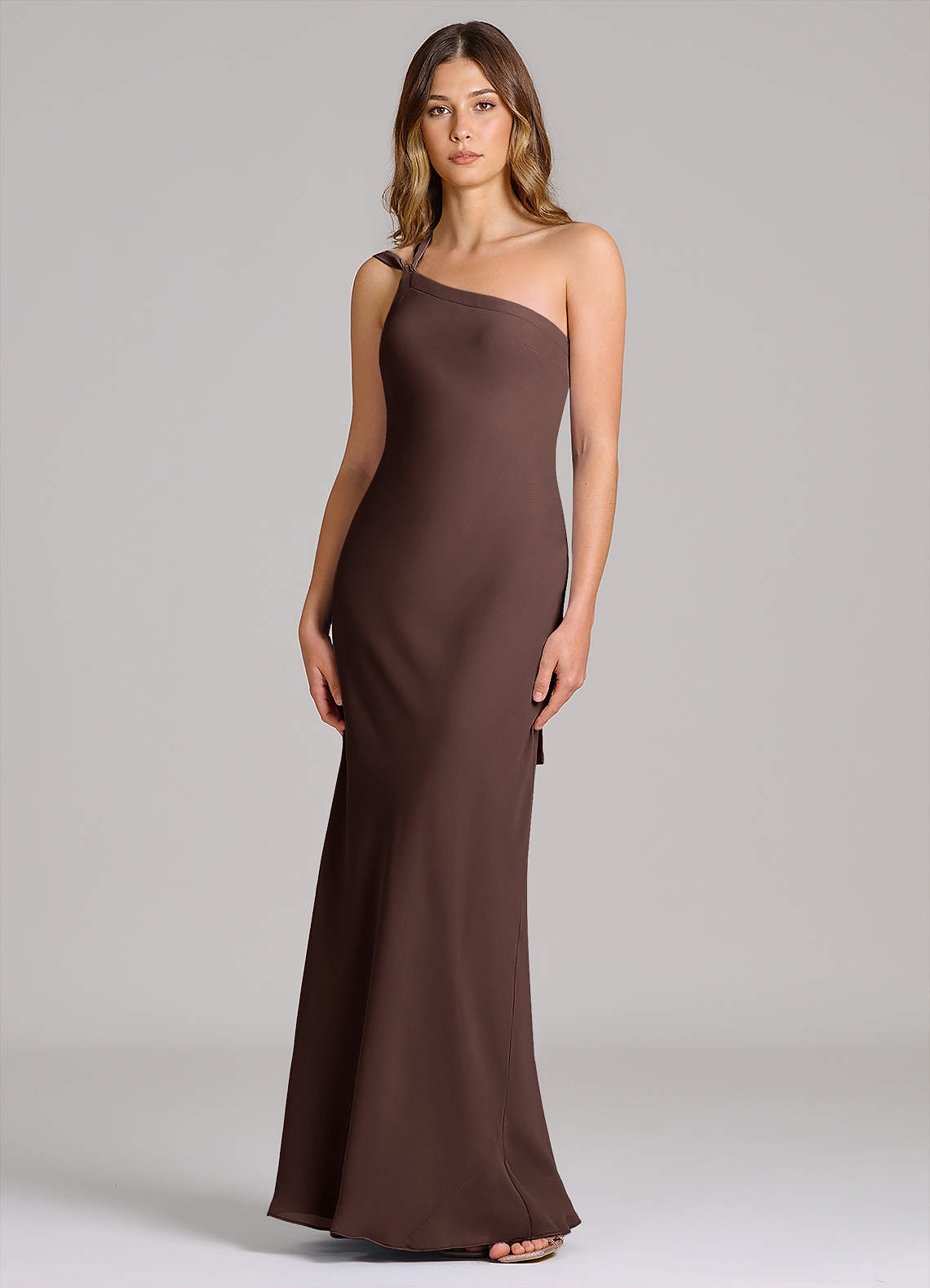 Vestido de Ganache de Gasa de Corte Recto con Hombro unilateral