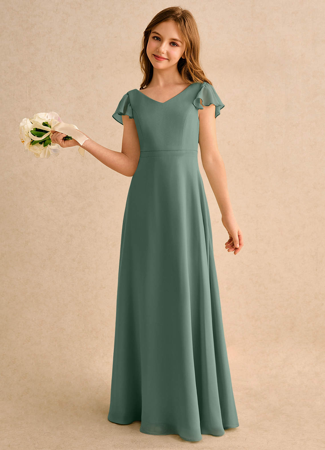 Vestido de Eucalipto de Gasa de Corte en A con Con mangas