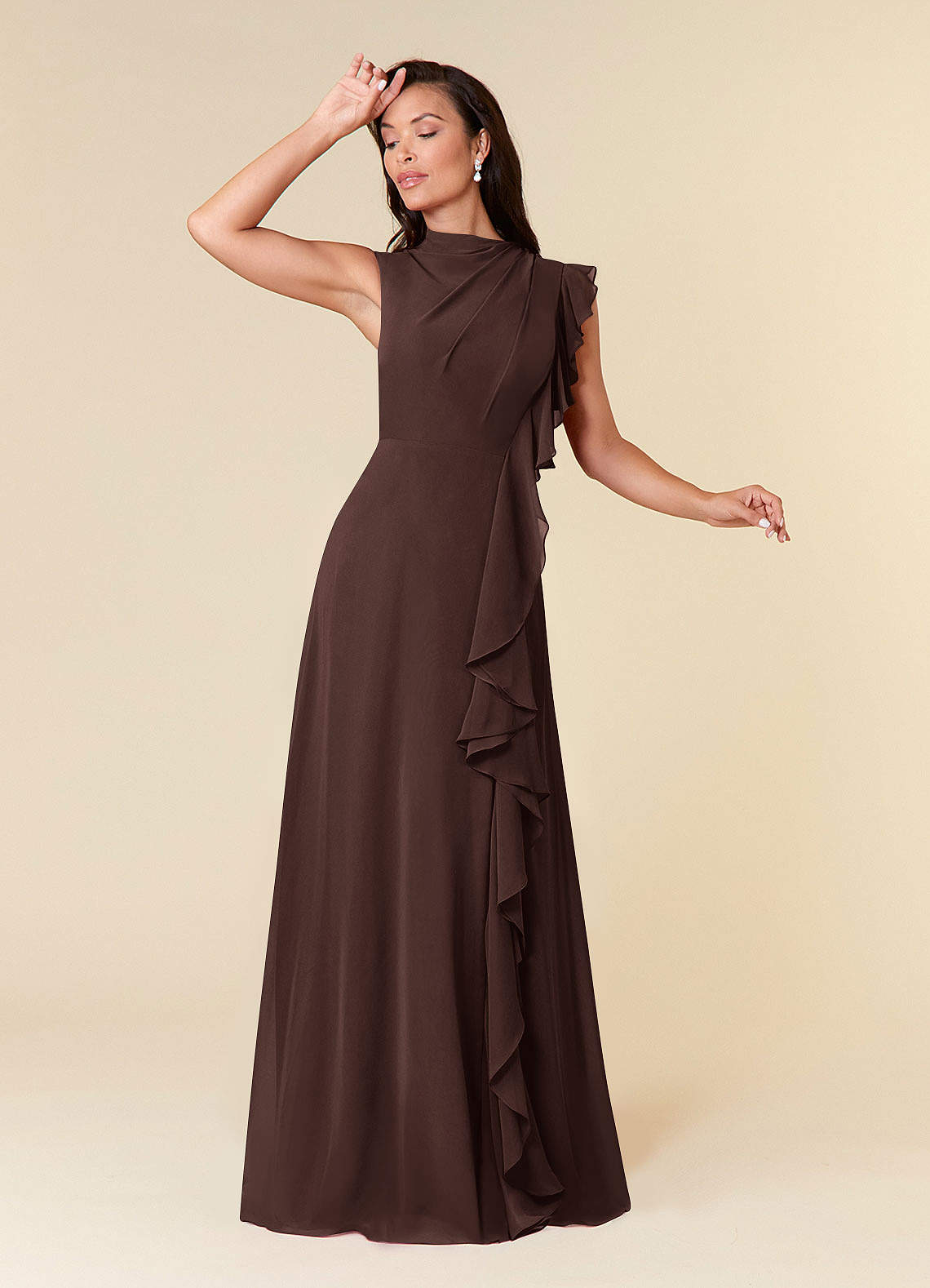 Vestido de Ganache de Gasa de Corte en A con Cuello alto plisado