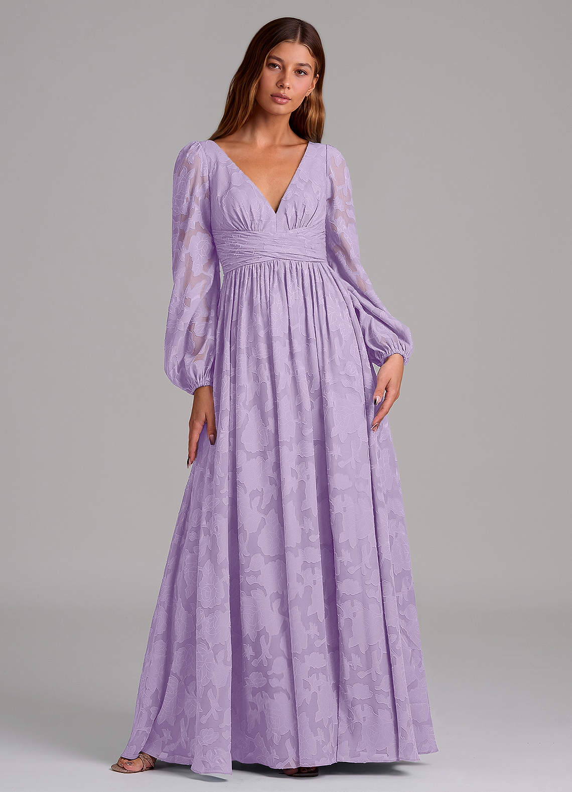 Vestido de Lila de Devorado Floral de Corte en A con Manga larga