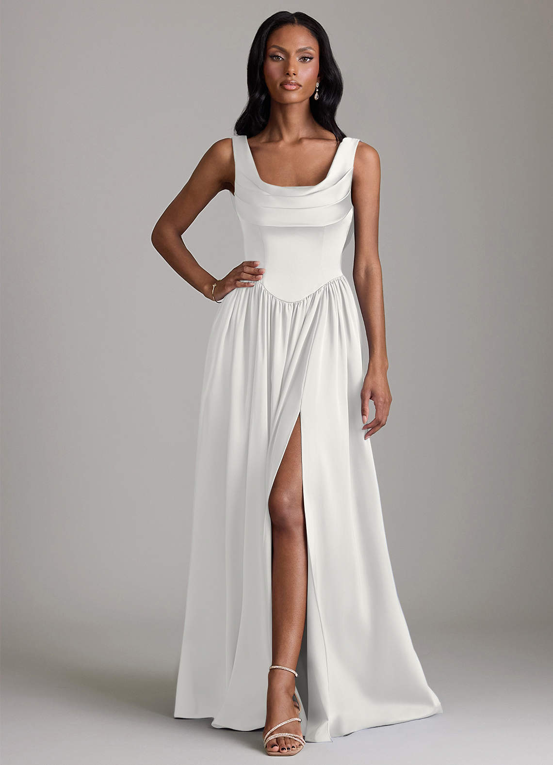 Vestido de Blanco de Satén Elástico de Corte en A con Con bolsillos